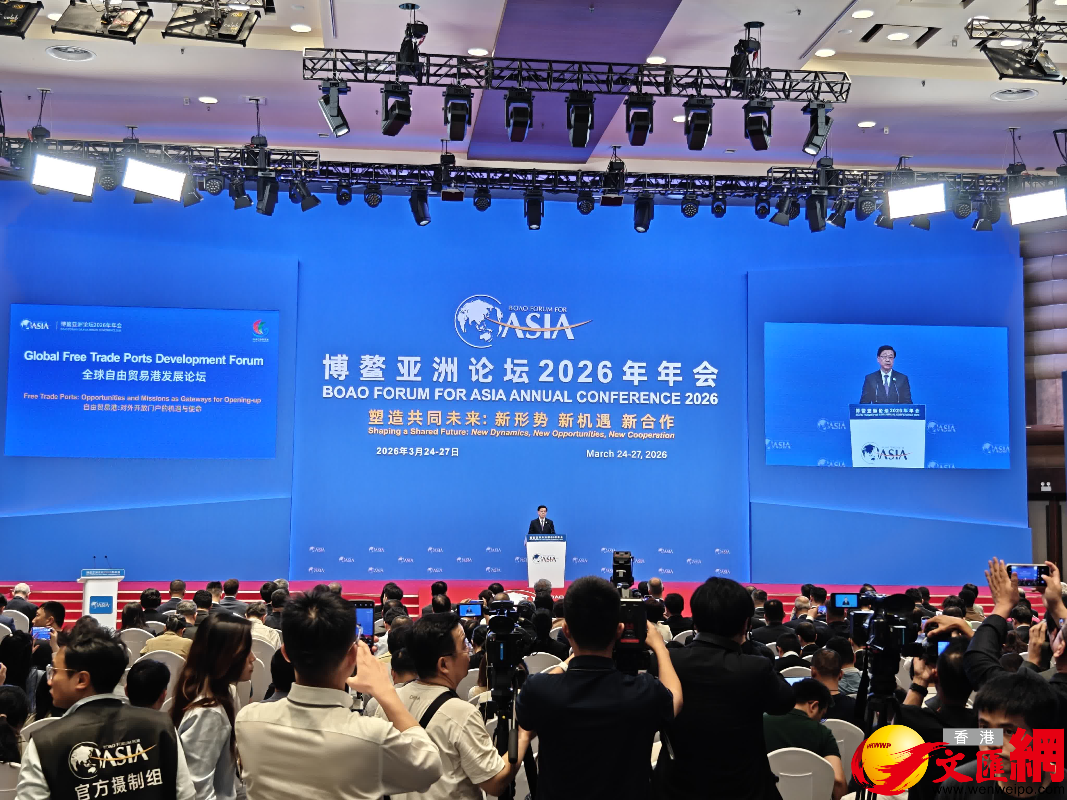 (香港文匯網記者黃寶儀、盧靜怡、何玫 博鰲報道)行政長官李家超24日赴海南出席博鰲亞洲論壇2026年年會,並在「全球自由貿易港發展論壇」上發表致辭。他表示,全球商界對香港的信任與信心,源於香港數十年來堅守誠信、尊崇法治、堅定踐行自由貿易與多邊主義。李家超強調,任何經濟體都無法在孤立中實現繁榮,穩定發展離不開開放包容、惠及各方的區域合作框架,香港正圍繞拓展全球貿易網絡、搭建投資機遇橋樑、促進區域經濟繁榮三大方向發力,搶抓共同發展新機遇。