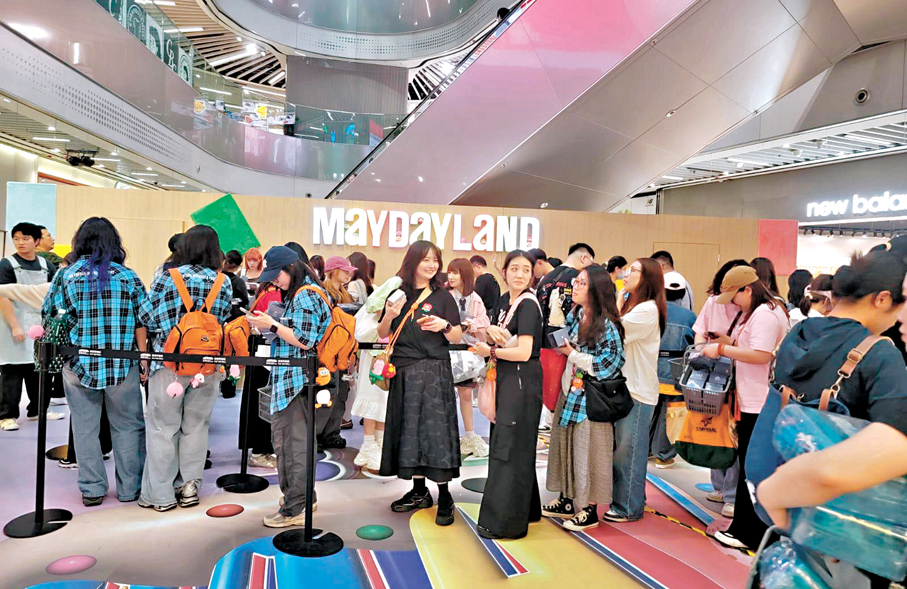 昨日下午二時,已有近千人排隊購買五月天周邊產品。歌迷更不時交流收藏心得、掃貨打卡,人均消費數千元,有人大手筆購入應援燈、T恤等限量紀念品。