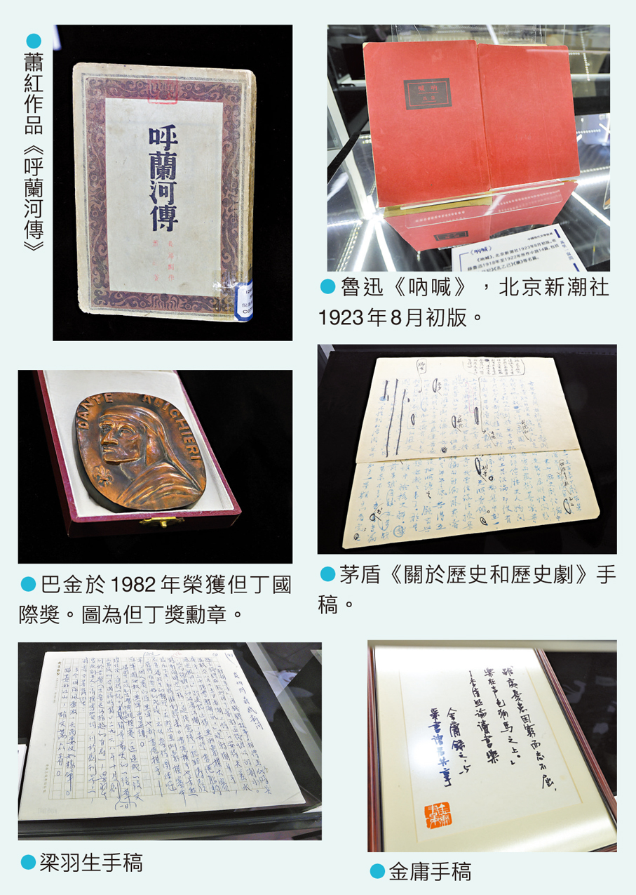 「萬里一窗間—文學名家的香港印跡」展出了魯迅、蕭紅、茅盾、巴金、梁羽生與金庸6位著名作家的相關資料,涵蓋人物簡介、代表著作、在港居住時間線,以及他們在香港出版的雜文、小說等。這些文獻與實物,共同構成了推動香港文學與新派武俠發展的重要文化符號。