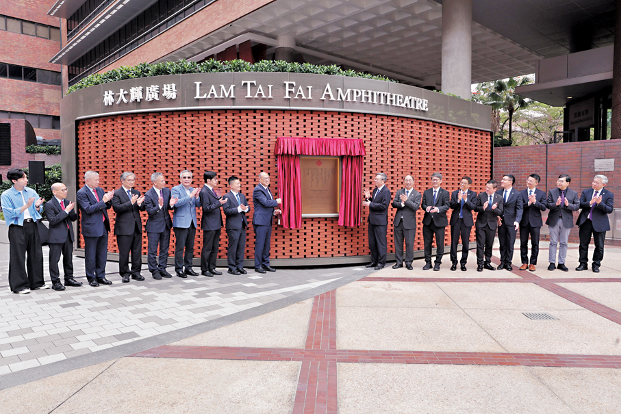 理大同日為優化後的「林大輝廣場」舉行揭牌儀式,由林大輝與滕錦光主持,一眾理大校董會成員及管理層出席,共同見證這座新校園文化建設正式啟用。
