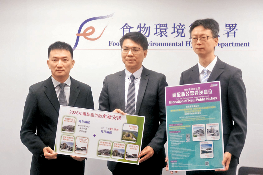 經檢視目前公眾骨灰龕位的供求情況,食物環境衞生署昨日宣布公眾骨灰龕位編配的最新安排及優化措施,將於今年8月1日起推出全新每月編配安排。除原本每月只編配屯門曾咀靈灰安置所外,將加入另外三個靈灰安置所作每月龕位編配,包括沙田石門靈灰安置所、粉嶺和合石第六期靈灰安置所,以及柴灣哥連臣角新廈靈灰安置所。食環署指出,新安排目的是為了市民無須等待一年才提出申請,未來每月合共可提供不少於1,600個可續期骨灰龕位,即全年可提供不少於19,000個龕位,足以應付市民需求。