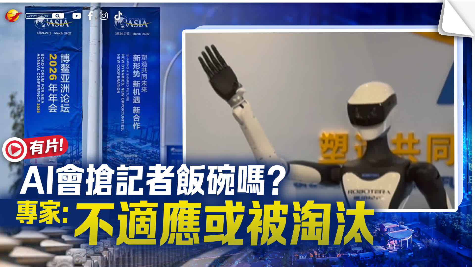 (香港文匯網記者盧靜怡、黃寶儀、何玫 博鰲報道)25日,博鰲亞洲論壇「人形機器人的進階與飛躍」分論壇如期舉行。論壇開始前一小時,場外已排起長長的人龍,不少記者提前到場「霸位」,只為第一時間捕捉論壇動態。而在記者人群中,兩位人形機器人格外吸睛,成為全場最特別的「嘉賓」。