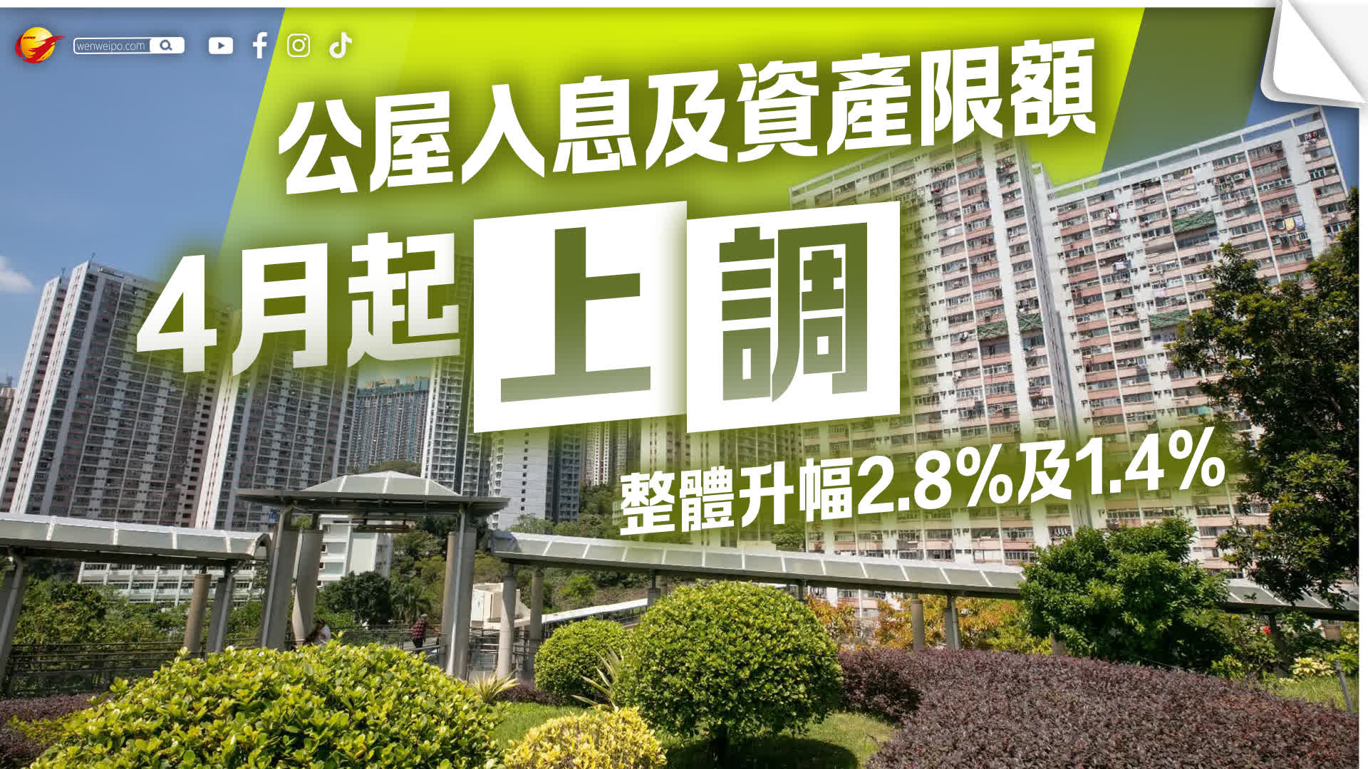 房委會發言人表示:「公屋入息及資產限額每年按既定機制檢討。根據現行公式計算,小組委員會通過在2026/27年度,所有家庭人數住戶的公屋入息限額均會上調,整體平均上升2.8%。另外,小組委員會亦通過所有家庭人數住戶的資產限額按既定機制上調1.4%。」