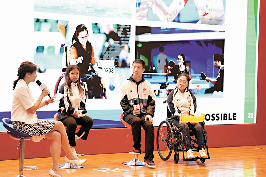 三名運動員席間分享自身經歷,期望以殘疾運動員身份啟發更多人,為殘疾人士帶來希望和勇氣。吳卓恩坦言殘奧運動教材套有助社會更理解殘疾運動員,推動共融。她又談到,「每次遇到困難都會跟自己說,如果你放棄了的話,就不會做到自己想做的事,要堅持下去。」殘奧六金名將蘇樺偉則鼓勵社會各界應該給予更多支持和關注,幫助殘疾運動員實現自己的目標。