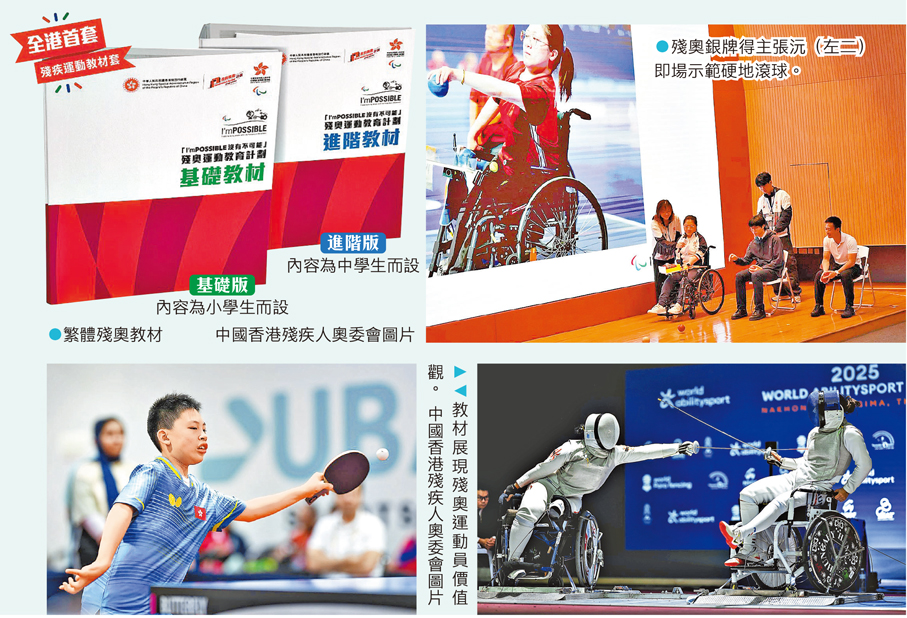 發布會昨日由中國香港殘疾人奧委會行政總監胡小玲講解教材,並邀得殘疾運動員出席交流分享,除了曾參加五屆殘奧會並六奪金牌的蘇樺偉、殘奧會銅牌得主游泳運動員吳卓恩外,殘奧會銀牌得主硬地滾球運動員張沅即場示範硬地滾球的玩法,讓參加者近距離體驗殘疾運動的玩法和獨特魅力,加深對殘疾運動的認識與對教材套的了解。