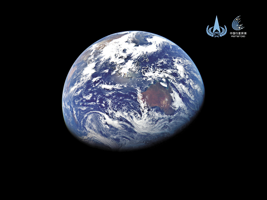 當視野拉遠,地球的形象也隨之改變。從距離地球三十八萬公里的月球表面回望,地球變成了一顆懸在黑色天幕中的藍白彈珠,視面積約為地球上所見滿月的十四倍。繼續向外,在火星軌道附近, 距離地球約一億六千萬公里處,地球已化為天空中一顆微微泛藍的明亮星點,再也分辨不出任何細節。