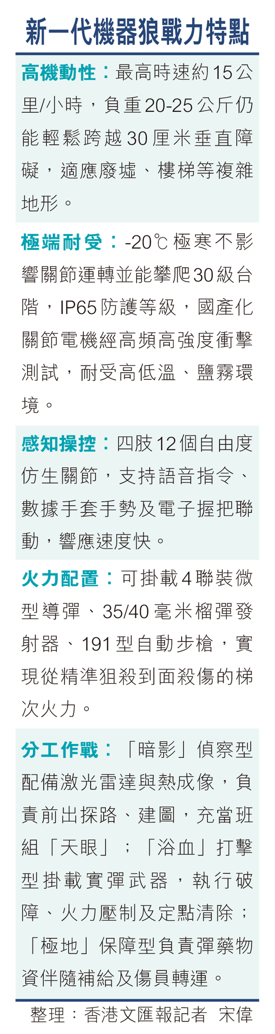 中國兵器科研人員表示,對於控制算法,團隊進行了大量仿真訓練以及強化學習訓練,在全國各地採集適配相關實測的參數。「我們把負載能力突破後,再裝載裝甲的情況下,還能夠裝載重火力,就能形成綜合性能更優的機器狼。」