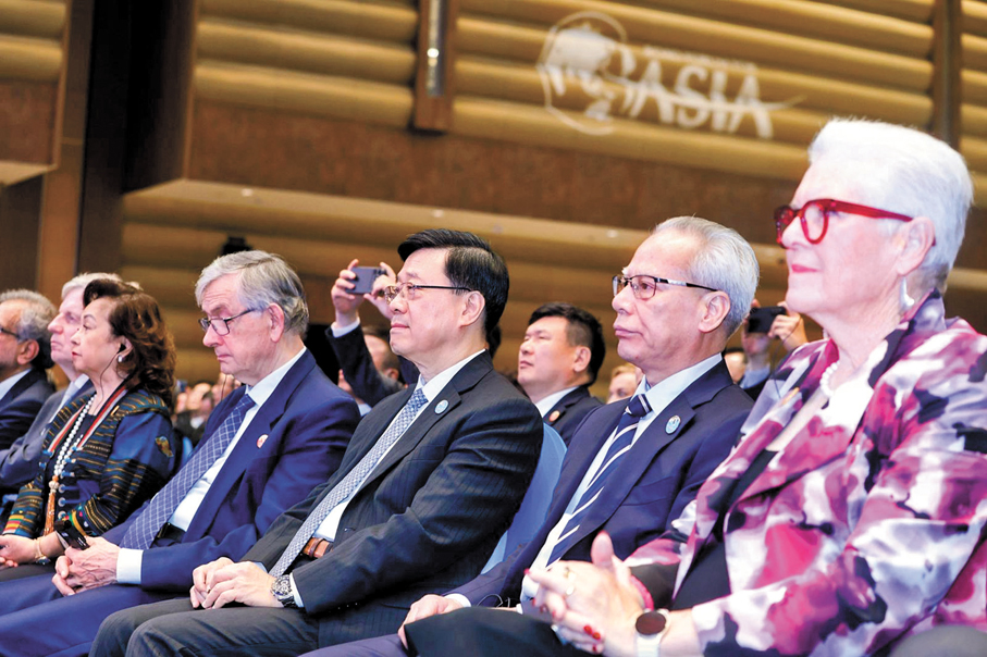 他表示,過去數年來,香港特區政府致力帶領商界開拓中東、東南亞等不同市場,拓寬對外合作版圖,未來更要將目光投向更多新興市場,探索更廣闊的發展空間,在融入和服務國家發展大局的同時,持續深化國際交往合作,與亞洲各國同心協力,築牢互信根基、深化開放融通、踐行互利共贏、守護和平穩定,助力亞洲經濟穩步增長,推動全球經濟朝着更加包容、普惠、共贏的方向前行。