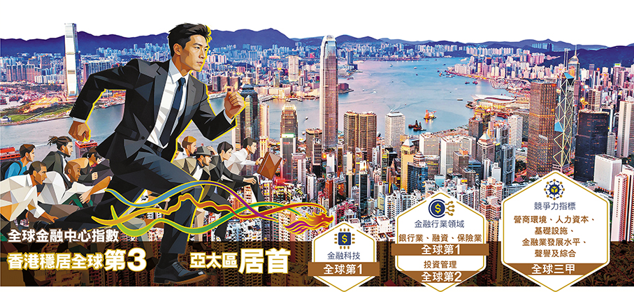最新的全球金融中心指數報告顯示,香港的國際金融中心地位獲進一步鞏固和提升。首四位的國際金融中心競爭激烈,香港穩居全球第三位、亞太區第一,總評分上升1分,與首位的紐約和第二位的倫敦僅相差2分和1分。在細項評分中,香港的「銀行業」和「融資」躍居全球首位,「金融科技」和「保險業」維持全球第一,「投資管理」則攀升至全球第二。分析認為,在當前國際地緣政局加速變化下,這些情況反映香港國際金融中心地位不斷鞏固提升,功能更趨多元,並正以新興賽道構建領先優勢。 ●香港文匯報記者 李昌鴻