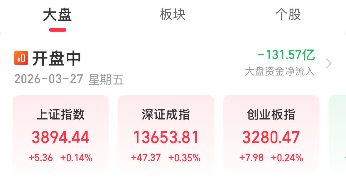 3月27日,A股三大指數早盤低開,隨後盤中集體翻紅。截至發稿時,上證指數漲0.14%,深證成指漲0.35%,創業板指漲0.24%。