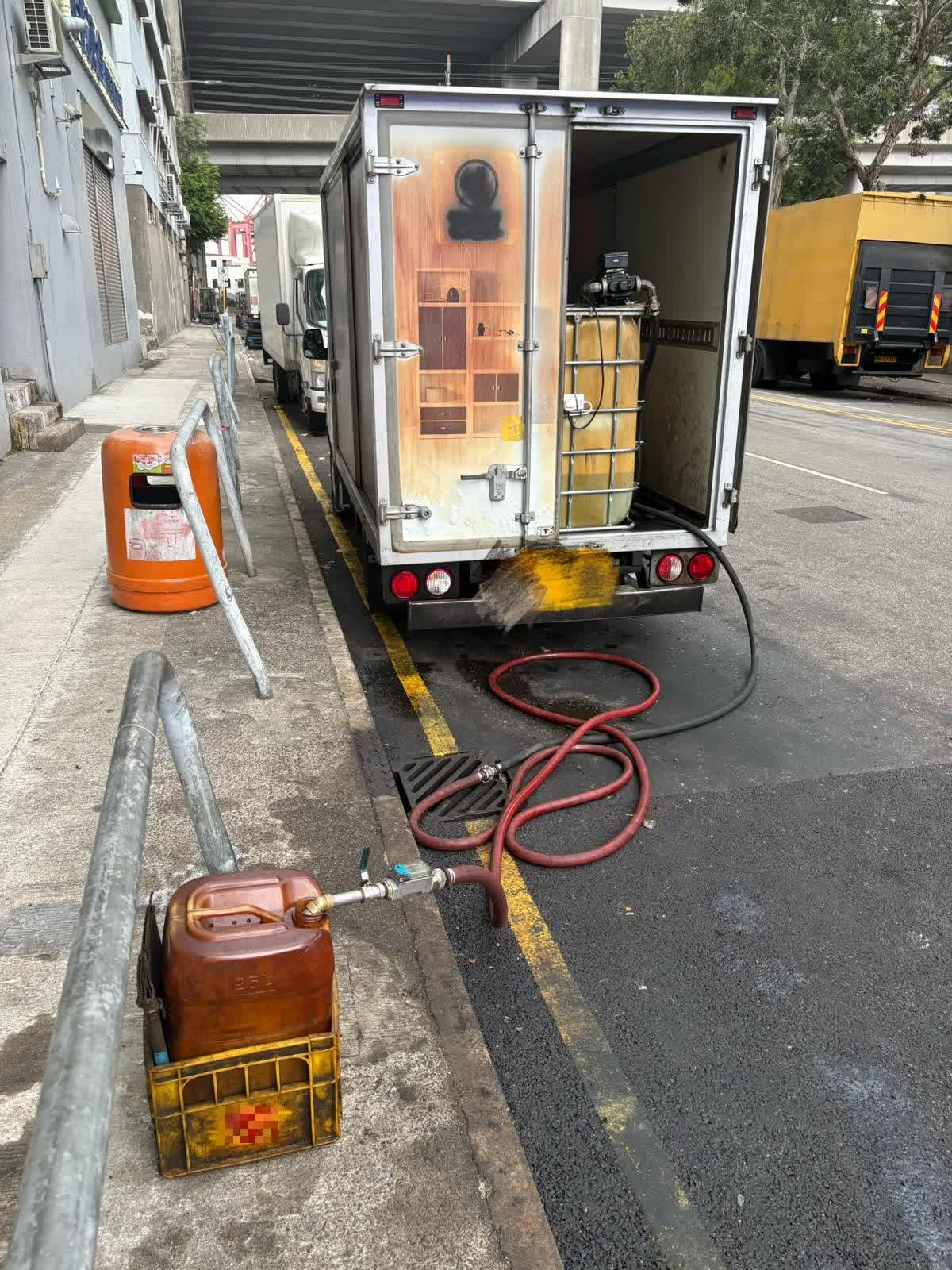 行動中,人員首先在葵和街突擊搜查4輛停泊上址的輕型貨車和中型貨車,發現大批入油工具,檢獲約4000公升非法柴油,市值約13萬元。人員亦在上址截查一名涉案的61歲姓袁男子。他涉嫌違反《消防(消除火警危險)規例》、《危險品條例》及《危險品(管制)規例》將會被檢控。