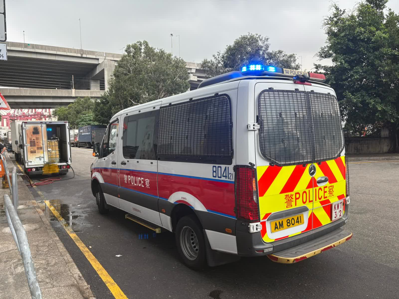另外,人員亦在貨櫃碼頭南路一停車場發現2輛輕型貨車,檢獲合共約4100公升非法汽油,市值約12萬元。海關遂根據《應課稅品條例》扣查該2輛輕型貨車。