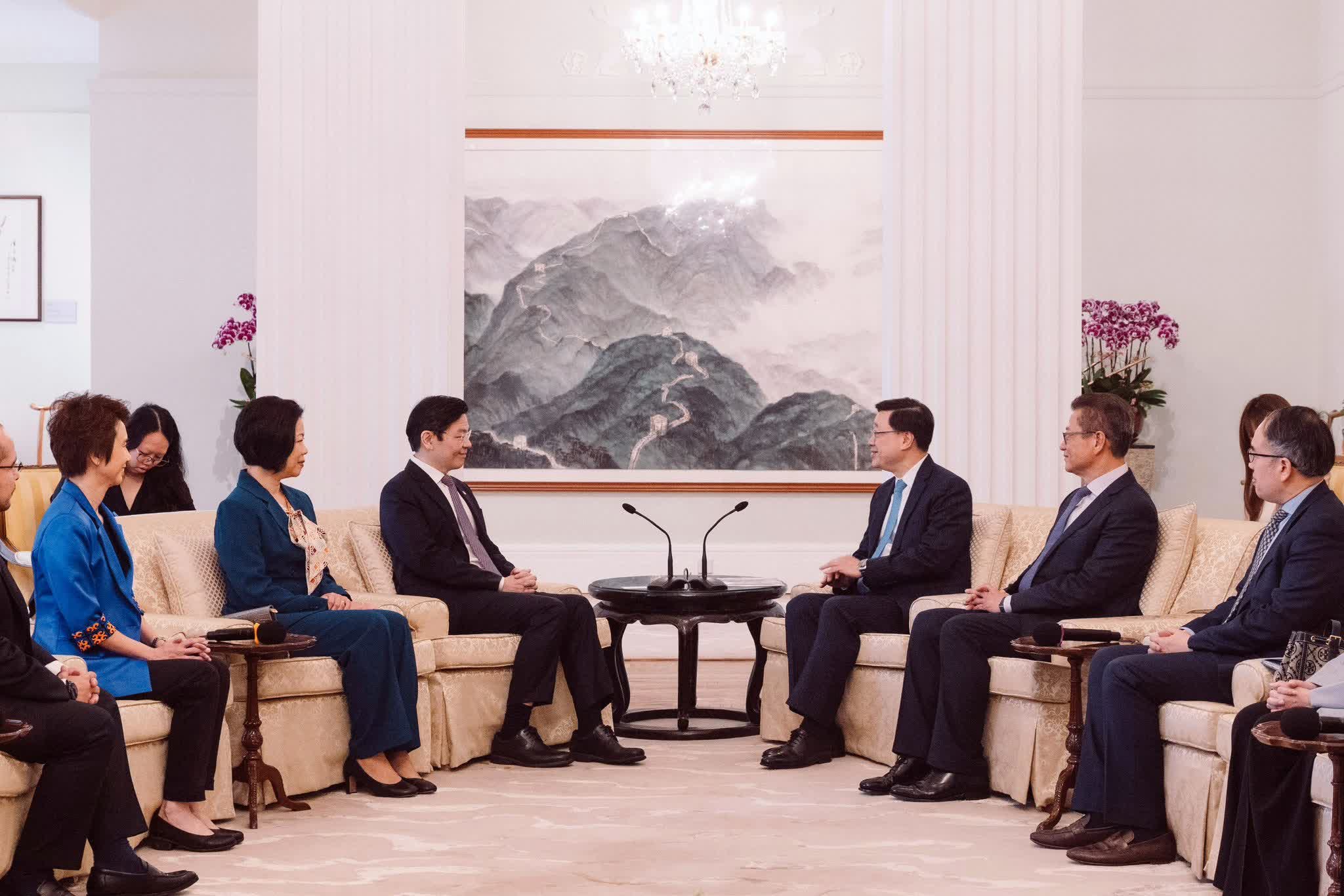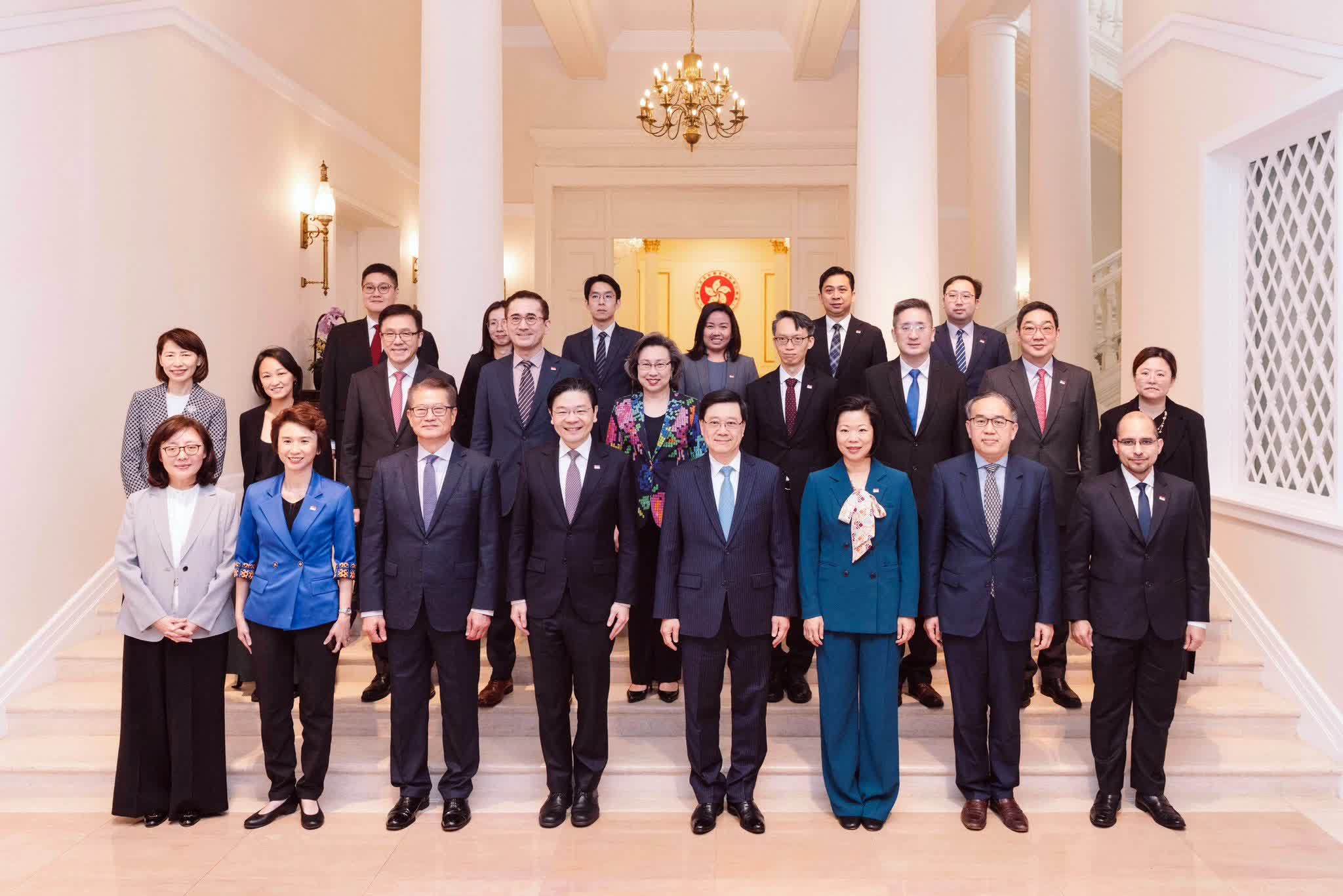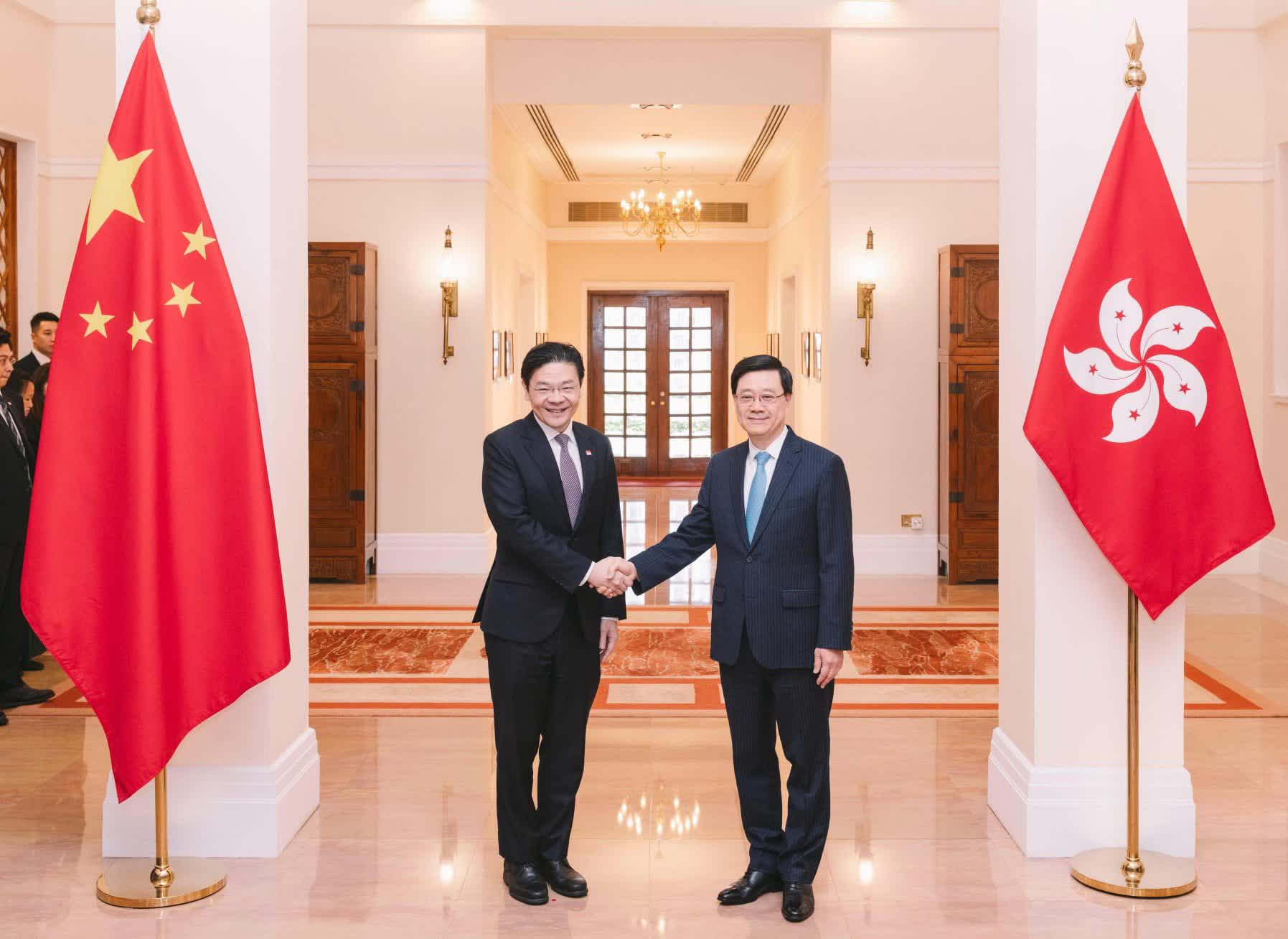 香港文匯報訊(記者 蕭景源)行政長官李家超今日(27日)與多名特區政府主要官員,在禮賓府與訪港的新加坡總理兼財長黃循財率領的代表團會面。李家超事後在其個人FB專頁表示,這是黃循財先生上任後首次到訪香港,有特別意義。香港和新加坡之間擁有源遠流長的友誼和經貿合作關係。2025年,新加坡與香港互為彼此第五大貨物貿易夥伴,去年貿易額同年比上升超過一成。目前,香港境內約有590家新加坡企業。