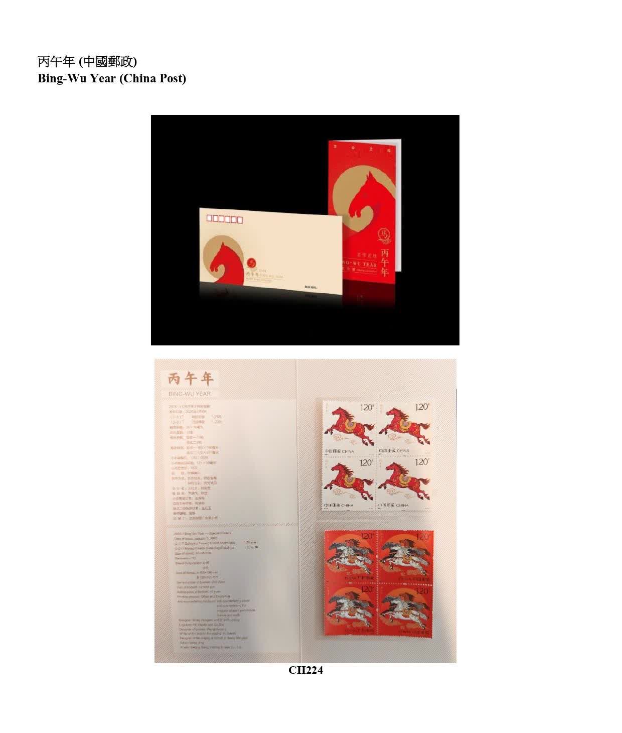香港文匯報訊(記者 蕭景源)香港郵政今日(27日)公布,由中國郵政、澳門郵電及其他郵政機關,包括澳洲、馬恩島、列支敦士登、新西蘭及英國發行的精選集郵品,將於3月31日(星期二)起發售。中國郵政發行「丙午年」郵票一套兩枚,第一枚名為「馳躍宏圖」,以「騰躍新時代」為核心意象,展現一匹駿馬奔馳於祥雲之上,四蹄生風;第二枚名為「萬駿臻福」,以「萬馬奔騰,馳騁千里」為核心意象,展現三匹奔跑的駿馬,三為眾,寓意奔騰不息、共同奮進。澳門郵電亦發行「馬年」郵票,以水彩手繪生動呈現駿馬風采,既兼具力量與速度,又蘊含昂揚進取的精神。