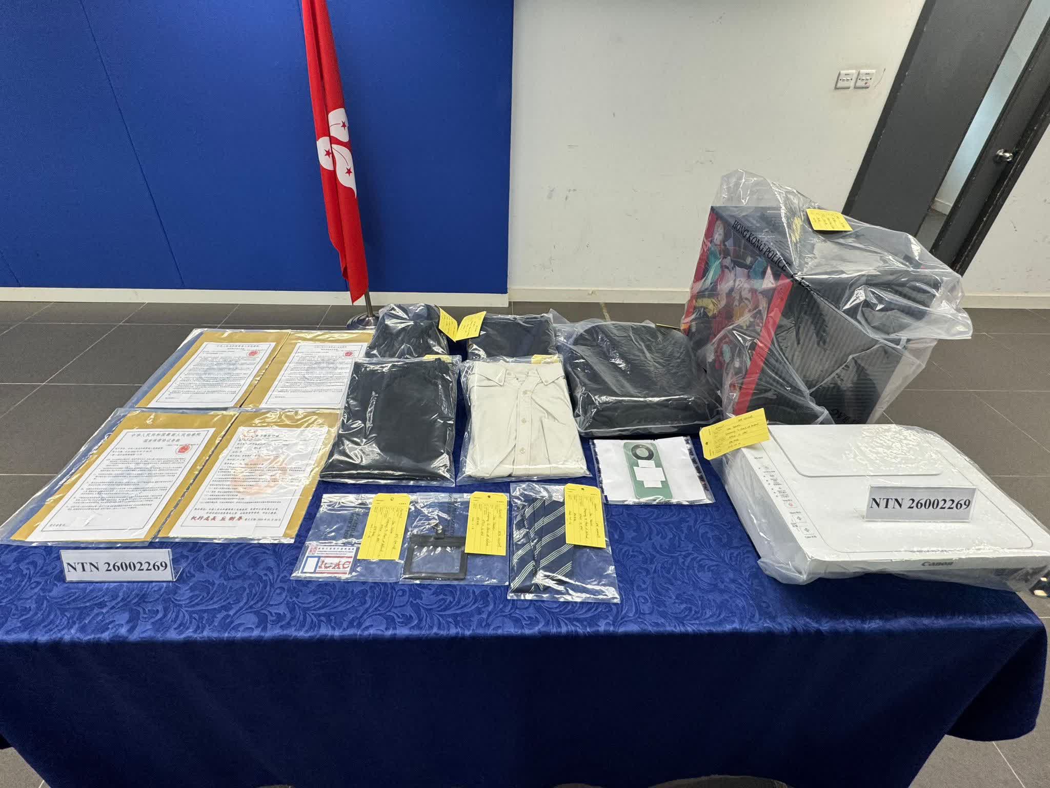 新界北總區科技及財富罪案組督察馬頌怡今日(27日)講述案情時表示,涉案詐騙集團的犯案手法,首先以假冒內地公安致電接觸受害人,指控受害人涉嫌干犯洗黑錢等罪行,隨後要求受害人繳付保證金以證明清白。而被捕男子在案件中,著整齊西裝扮演「特務調查人員」的角色與受害人見面,展示偽造廉政公署工作證件、文件及內地機關發出的「保密令」,並要求受害人簽署「保密令」以博取信任,令受害人相信自己確實涉及洗黑錢等罪行。其後,詐騙集團會透過電話及短信,要求受害人以銀行轉賬或現金方式提交數十萬元至逾百萬元「保證金」。