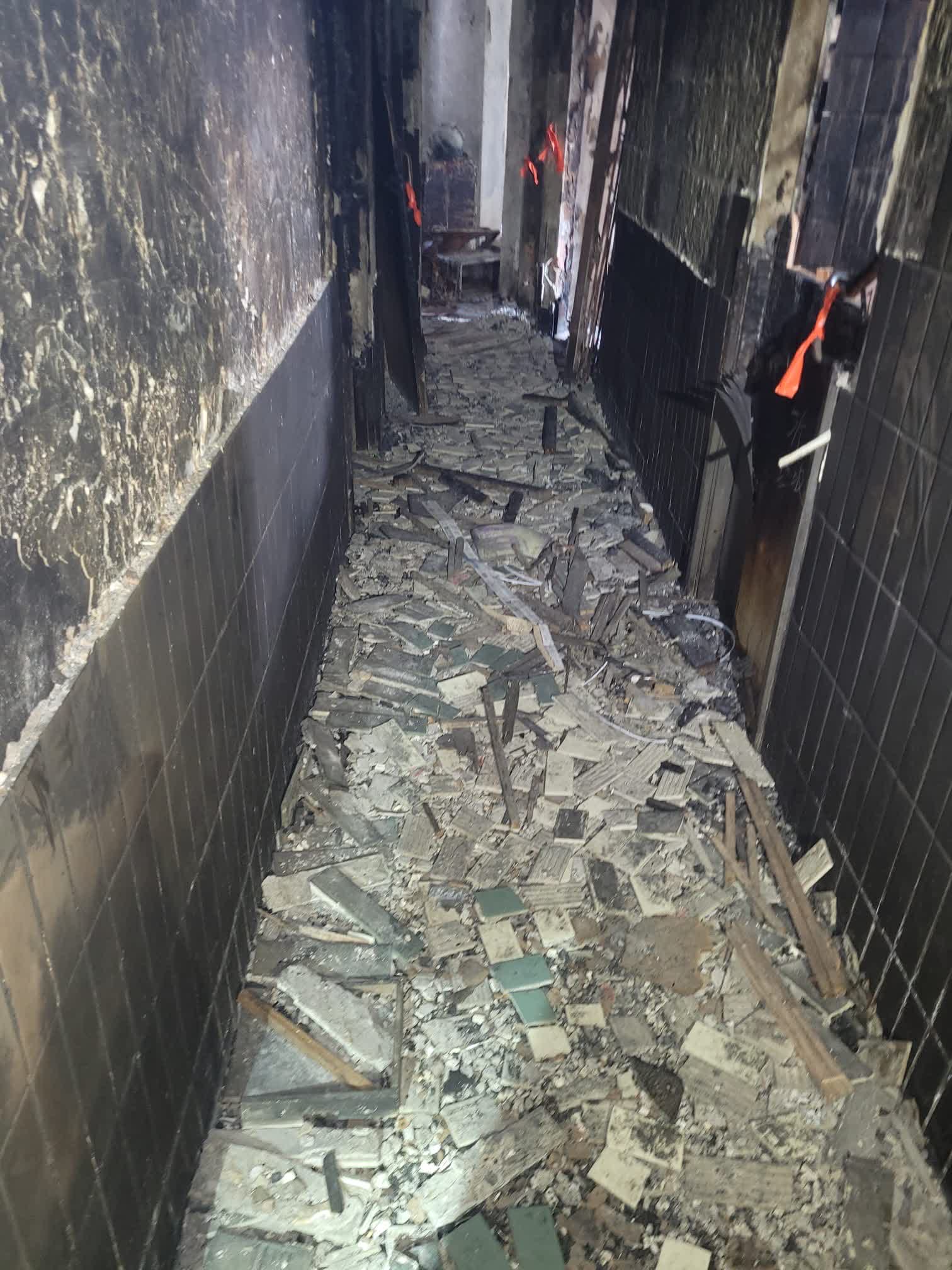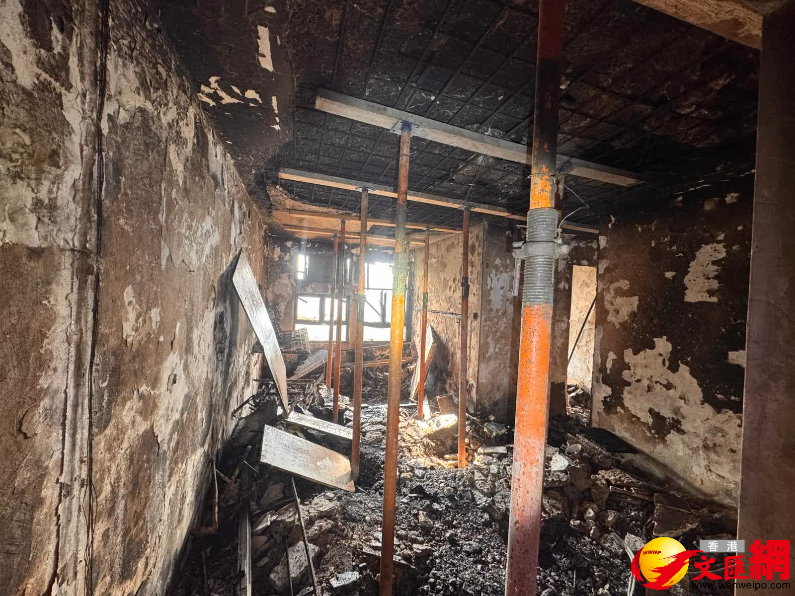 工程團隊已做過詳細評估,單位的狀況分成三種,特別是有十七組單位的情況,其上面的單位可見到傢俱、窗簾,甚至有些物品,好像沒有受火波及,仍然放置於單位內,但這個單位下面一層的單位損毀得非常非常嚴重,可見天花所有石屎已經掉下來,只剩下一些鋼筋,樓上單位地面板的承托力完全受到影響。