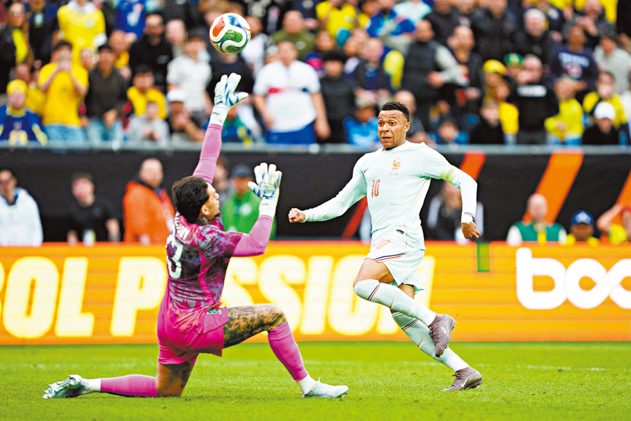 香港文匯報訊(記者 楊浩然)香港時間昨日(27日)凌晨上演一場頂級友賽,結果法國在下半場大部分時間十人應戰下,仍以2:1擊敗巴西。