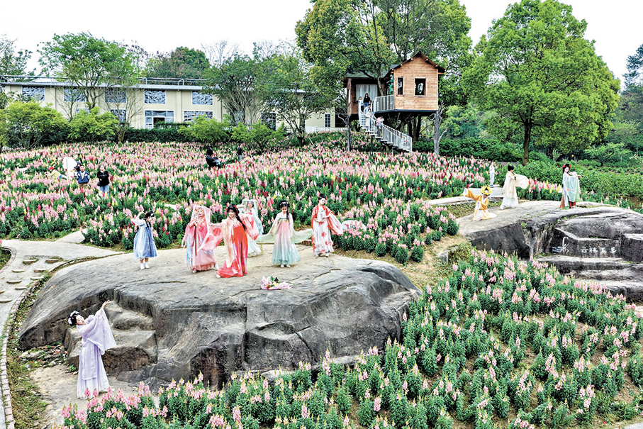 福建福州的春日景致同樣令人心醉。近日,城區黃花風鈴木迎來盛花期,金黃花簇綴滿枝頭,與城市街景交相輝映,宛如鋪展在都市中的金色畫卷,吸引不少市民和遊客前來觀賞、拍照留念。此外,在西禪寺附近的「粉黛望春」人工造景景點,滿園春色由假花裝扮而成,營造出浪漫氛圍,成為市民休閒遊玩的新去處。自然花海與人工景觀相得益彰,共同繪就福州春季的多彩風貌,也展現了城市在文化與旅遊融合上的創意。