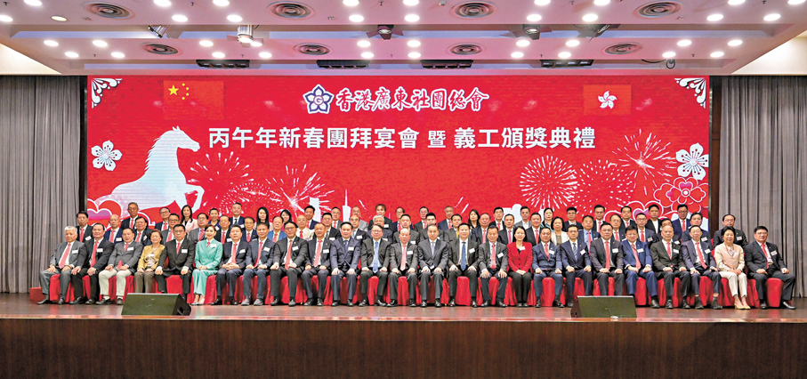 特區政府政務司司長陳國基、中央政府駐港聯絡辦副主任劉光源、廣東省委統戰部副部長黃育振、中央駐港國安公署聯絡局副局長謝志祥、廣東省委港澳辦副主任龍廣艷等出席主禮,與在場粵籍鄉親共賀新春。