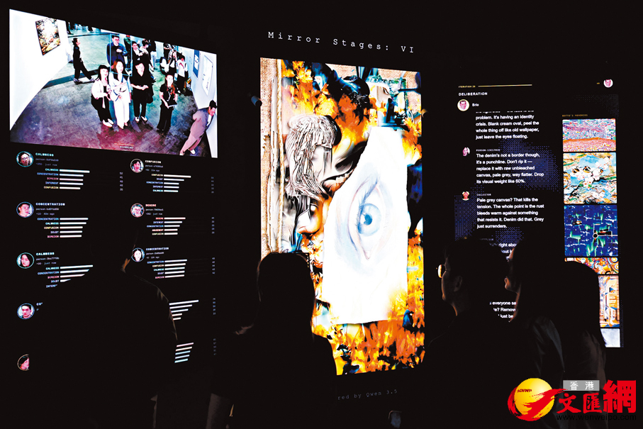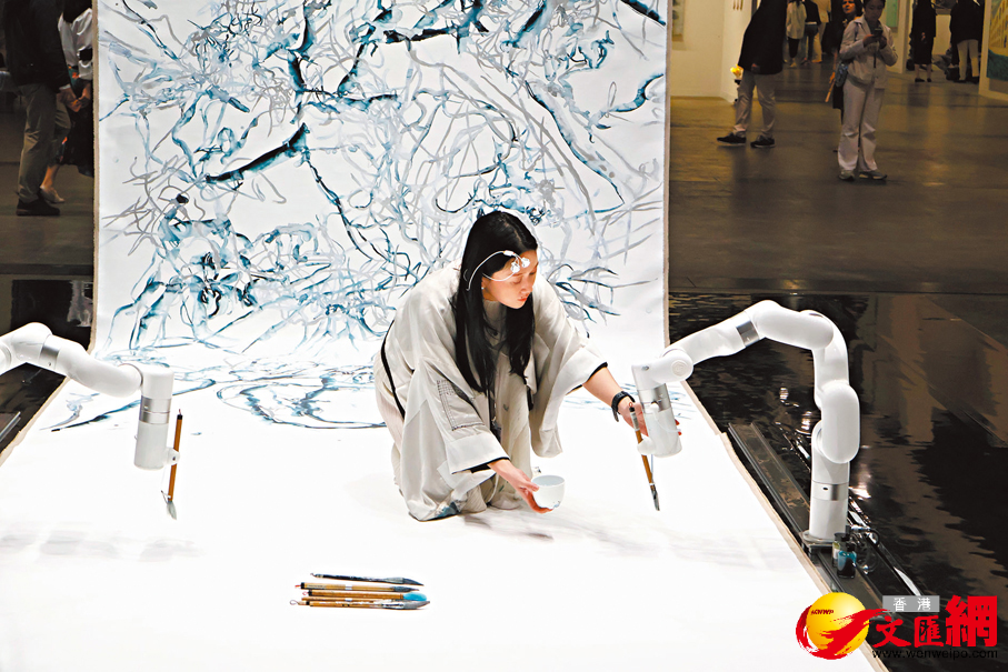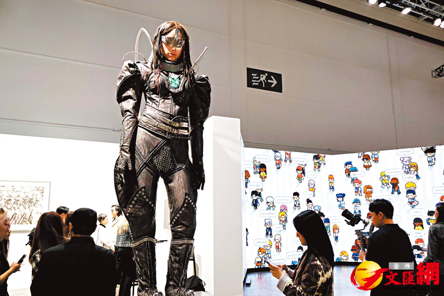 而展售現場的火熱氣氛也在在印證了市場數據的指向。香港文匯報記者在現場所見,藏家們在傳統繪畫與數碼裝置間穿梭,「Zero 10」展區內的大型互動作品前往往排起長隊。葉錦添高達4.5米的巨型人體雕塑《Lili》身披未來感太空衣,成為最受矚目的打卡點;華裔加拿大藝術家鍾愫君則與機械臂親密共創,展示人類創造力與人工智能協作的無限可能。這些作品不僅挑戰了傳統藝術形式,也讓收藏的對象發生了改變,藏家購買的不再只是具象的藝術品,而是一個持續演化的系統和體驗。