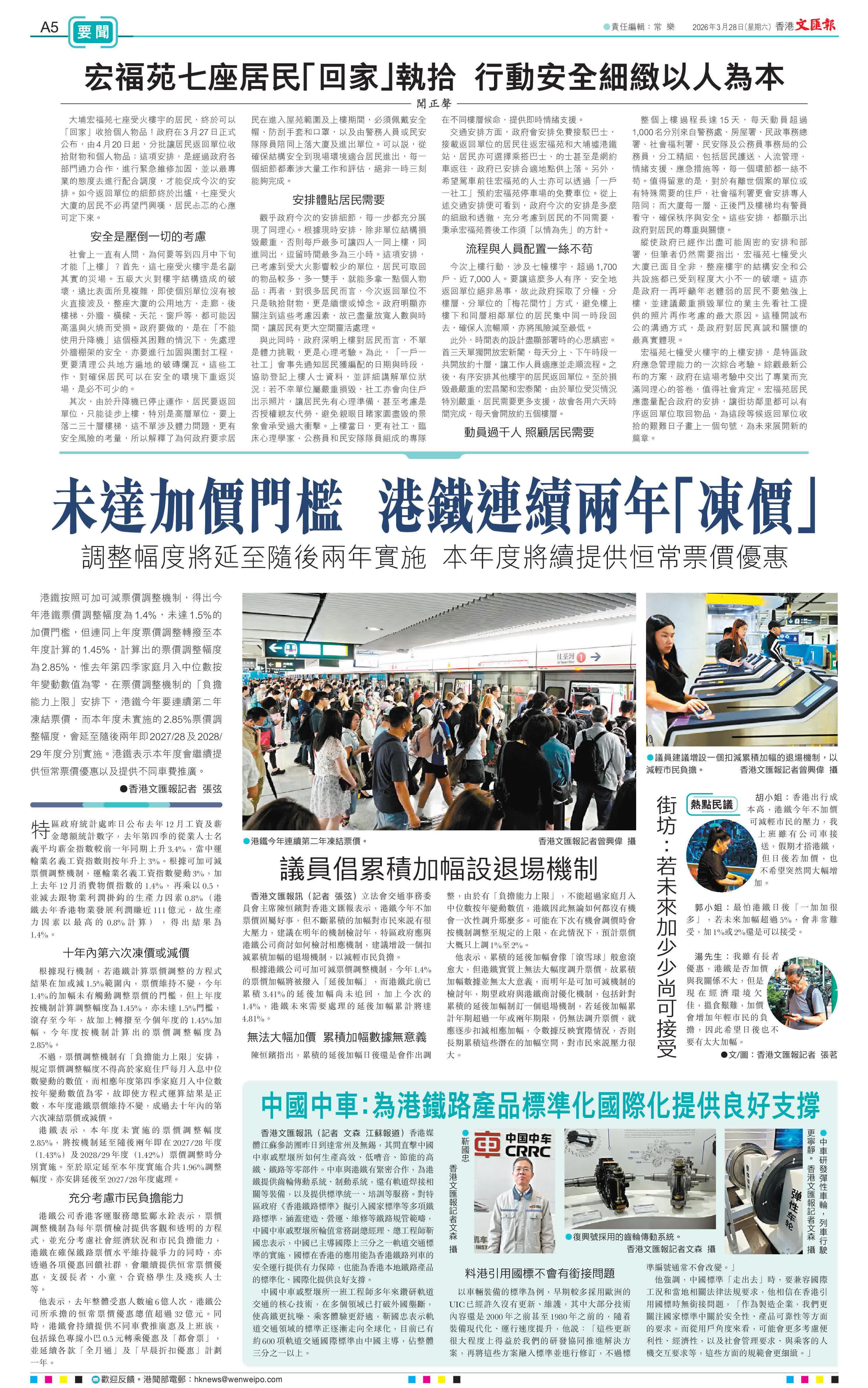 他表示,去年整體受惠人數逾6億人次,港鐵公司所承擔的恒常票價優惠總值超過32億元。同時,港鐵會持續提供不同車費推廣惠及上班族,包括綠色專線小巴0.5元轉乘優惠及「都會票」,並延續各款「全月通」及「早晨折扣優惠」計劃一年。
