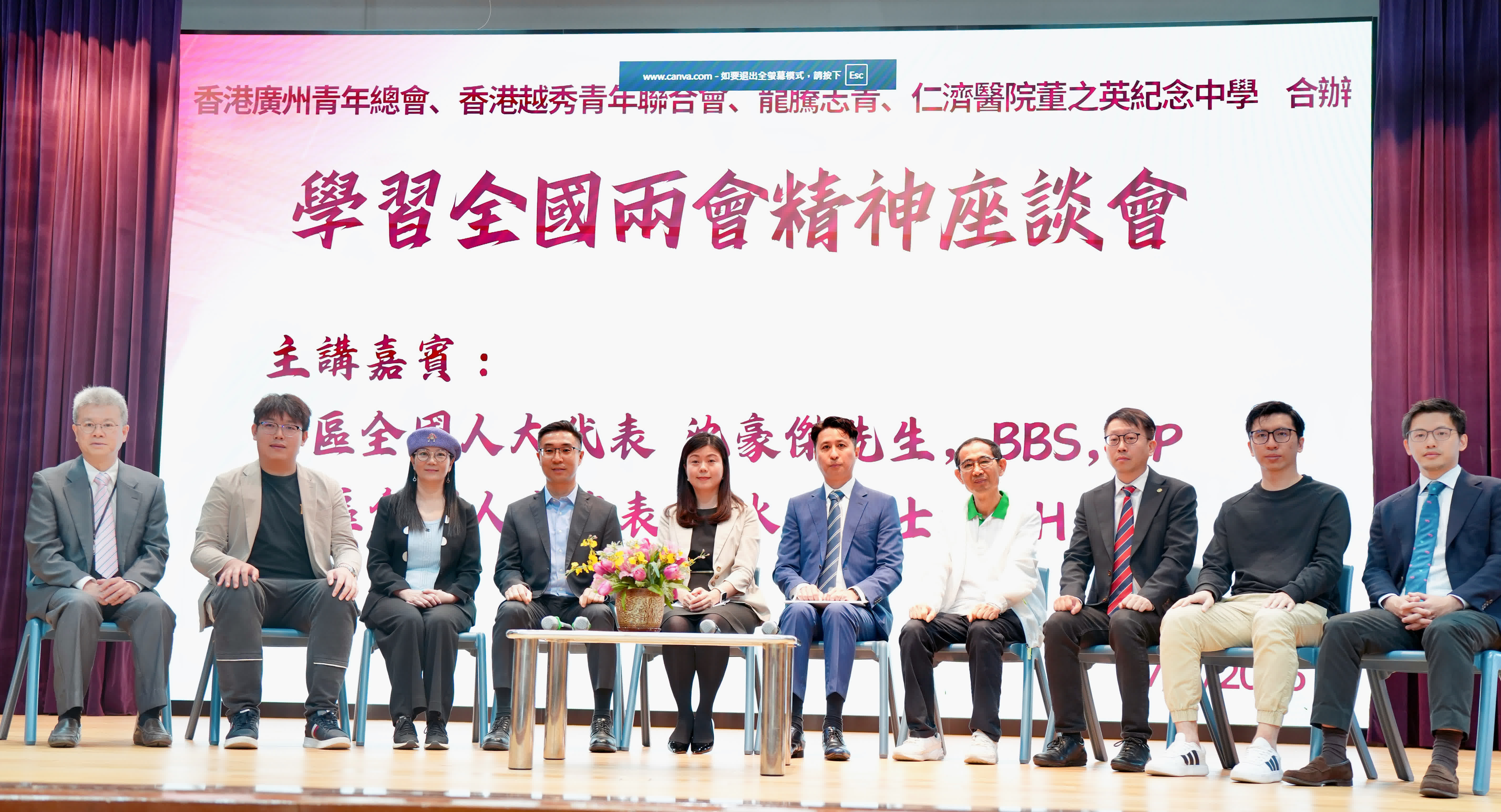 座談會由香港廣州青年總會執行主席鄭彥鈞、香港越秀青年聯合會會長兼仁濟醫院董之英紀念中學副校監黃子文亦等主辦機代表致辭。