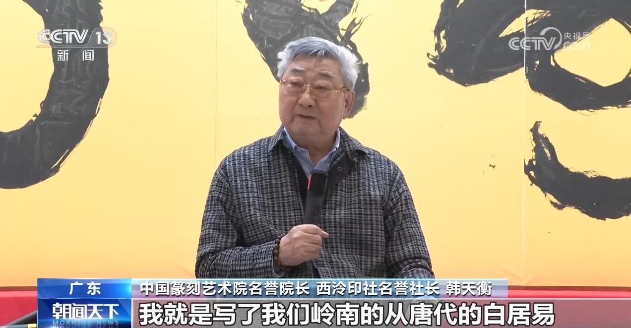 中國篆刻藝術院名譽院長、西泠印社名譽社長 韓天衡:我就是寫了我們嶺南的從唐代的白居易、宋代的蘇軾、明清的一些大詩人,寫了17首他們歌頌荔枝的詩。從各個角度反映了我們廣東的風土人情,他們對廣東的那種深厚的情感,跟對廣東人的歌頌。