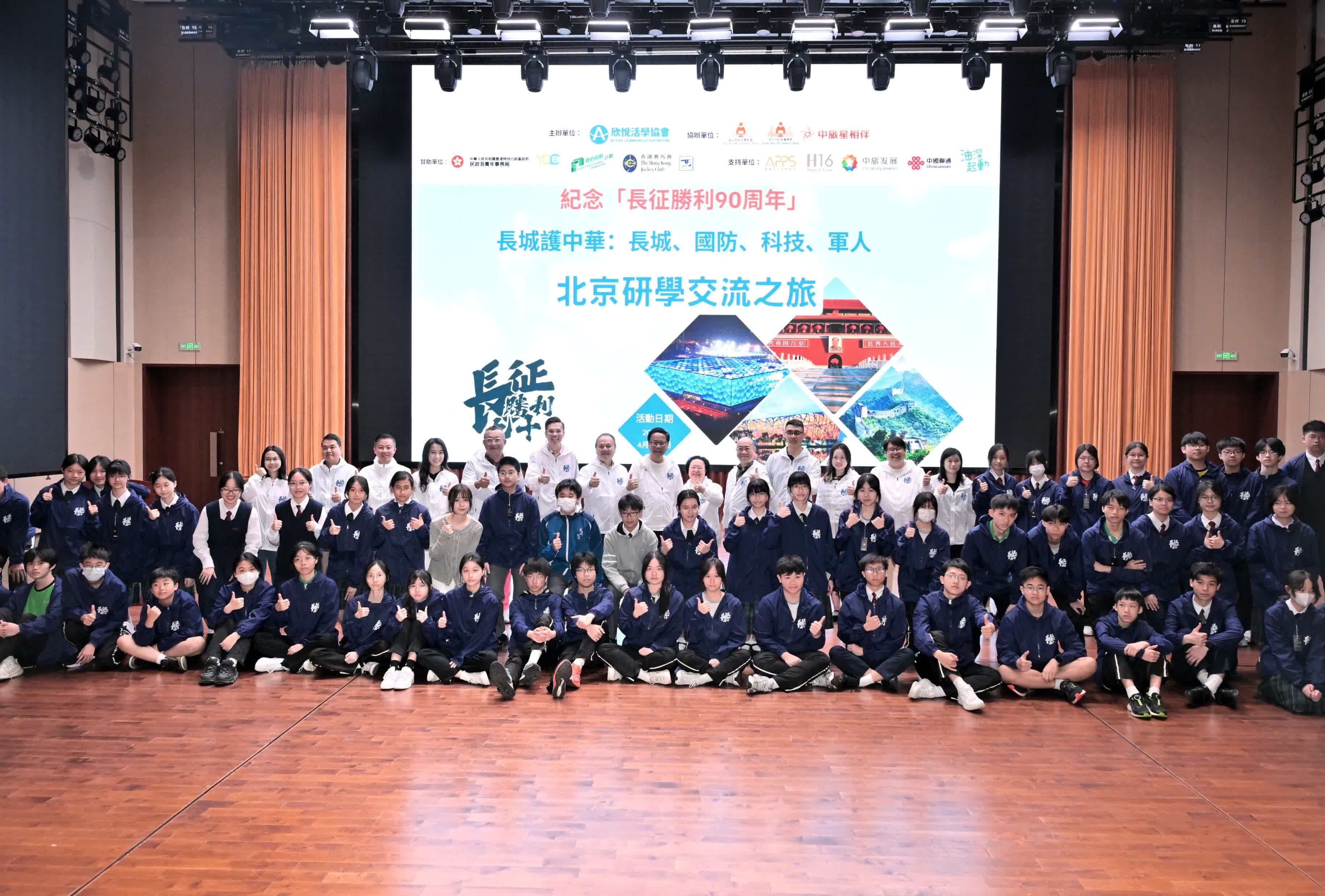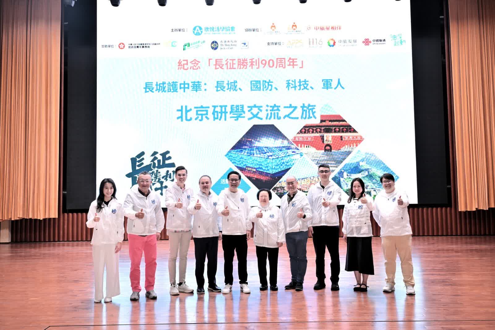 香港文匯報訊 (記者 黃子龍)欣悅活學協會主辦的「紀念長征勝利90周年長城護中華:長城、國防、科技、軍人北京研學交流之旅」將於4月7日出發前往北京進行為期5日4夜的交流活動。交流團師生今日(28日)齊集於昂船洲軍營駐香港部隊展覽中心舉行隆重啟步儀式及營前簡介會。民政及青年事務局青年專員陳瑞緯致辭時,鼓勵同學透過今次北京研學,親身感受長征精神與國家進步,將愛國情懷轉化為實際行動。