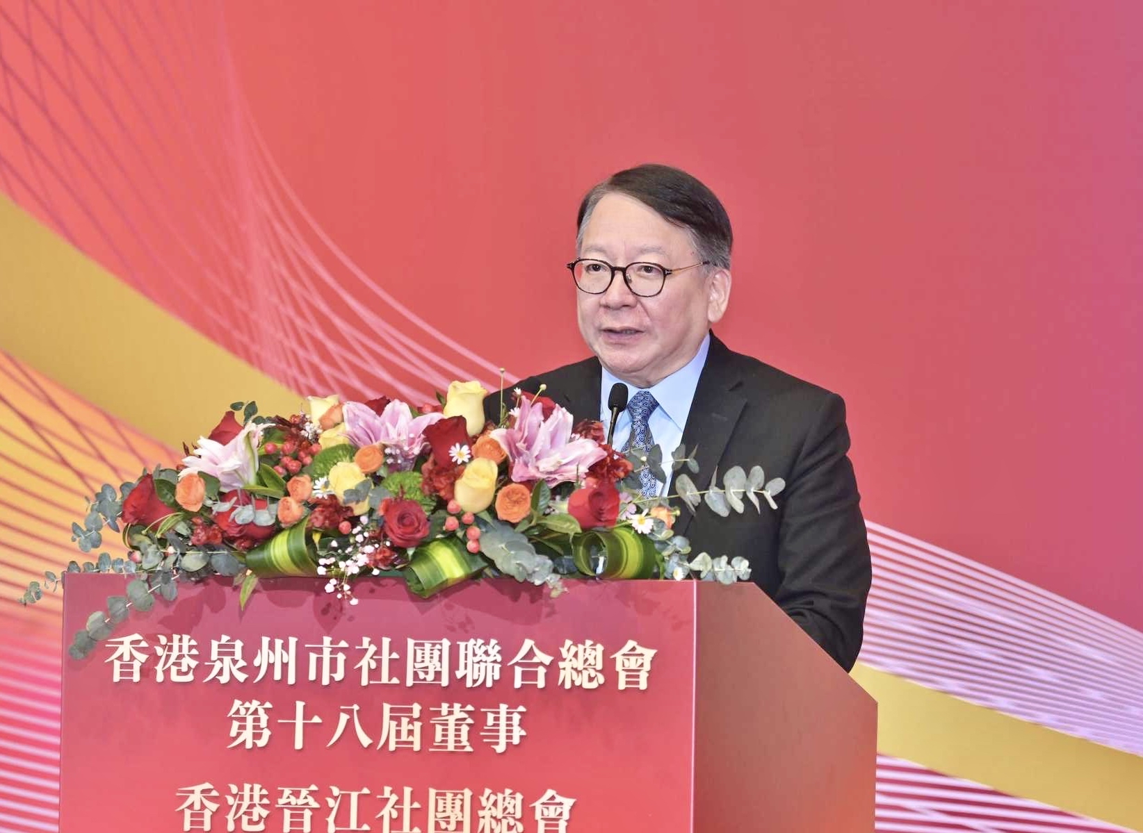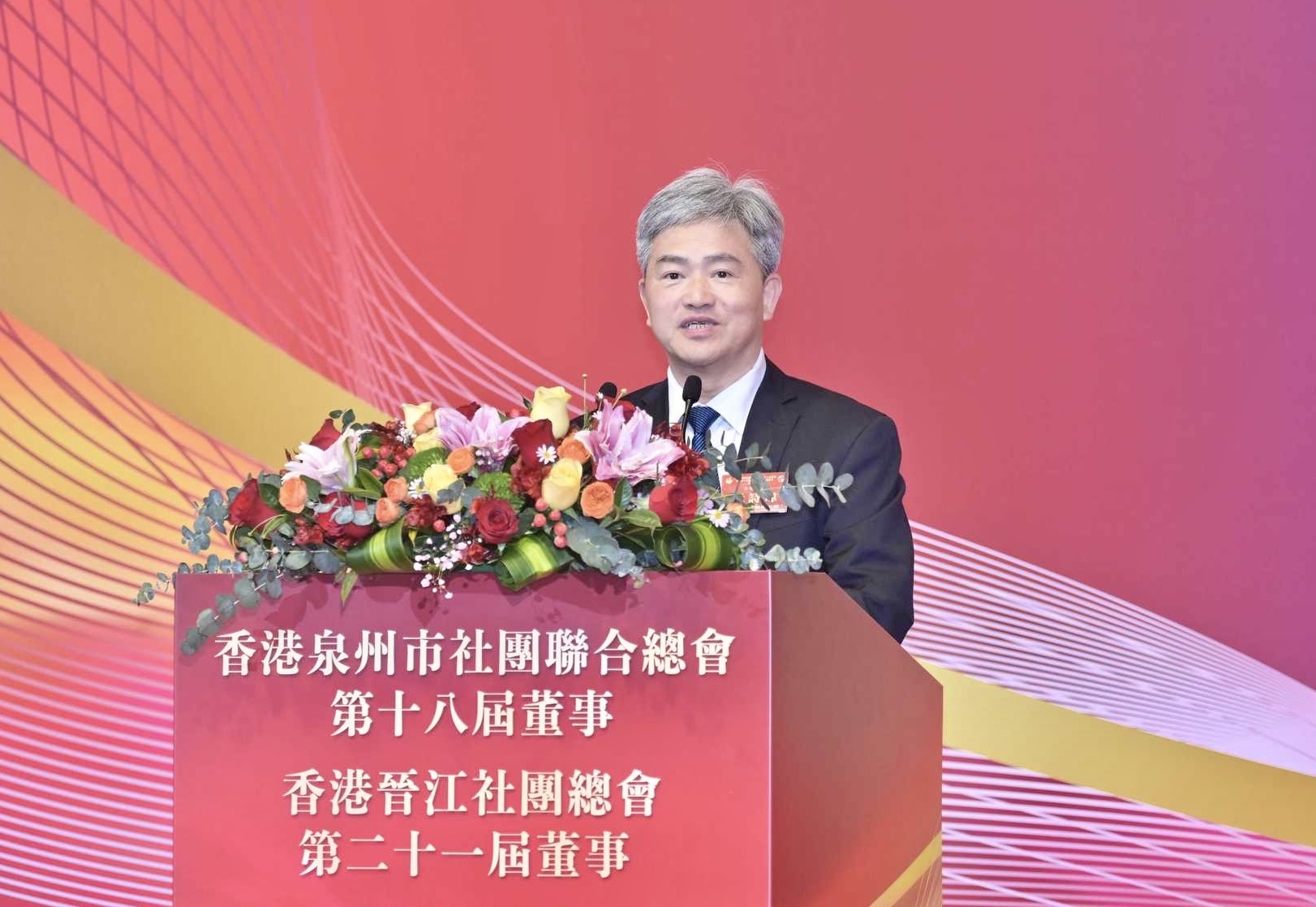特區政府政務司司長陳國基指出,泉州是福建省三個中心城市之一,是福建省以及全國的其中一個重要的經濟引擎;晉江也通過大力發展經濟,不斷增強自身的實力。香港是國際金融貿易和航運中心,三地深化合作、優勢互補,前景一定更加美好。他期望香港泉州市社團聯合總會、香港晉江社團總會繼續發揮橋樑作用,全力投入國家和閩港兩地的社會建設和經濟發展,為鄉親謀福祉,為香港、為家鄉作出更多貢獻。