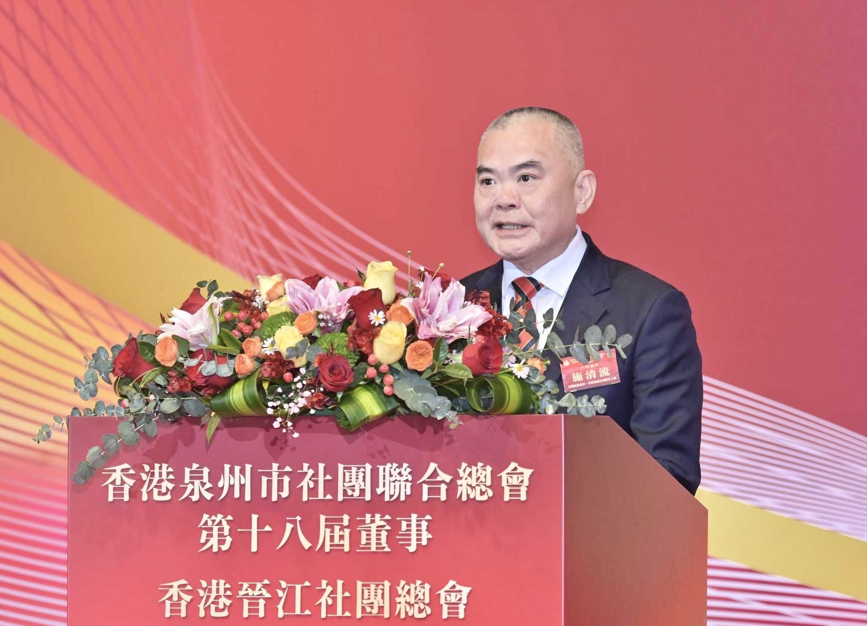 香港泉州市社團聯合總會第十八屆會長、香港晉江社團總會第二十一屆董事會主席許志群致辭表示,未來將與新一屆團隊一道,恪盡職守、務實擔當,重點做好四項工作:第一,堅守愛國愛港立場,築牢團結根基。第二,深耕鄉親服務,打造溫馨家園。第三,搭建交流橋樑,促進融合發展。第四,傳承文化根脈,培育青年力量。