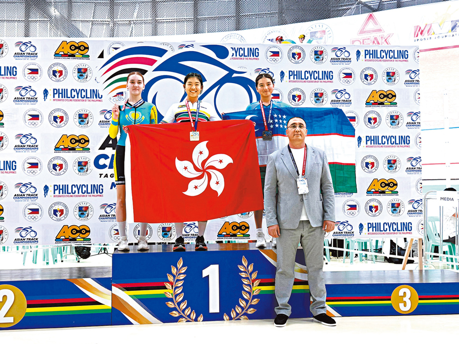 香港文匯報訊(記者 張發兒)場地單車亞錦賽昨日繼續在菲律賓上演,港將羅靖喬出戰女子青年組記分賽,最終這位16歲車手在兩次衝分圈取得首名兼力壓主車群下,壓過哈薩克斯坦及烏茲別克斯坦車手奪金。至於梁穎儀則在女子精英記分賽中取得銅牌。