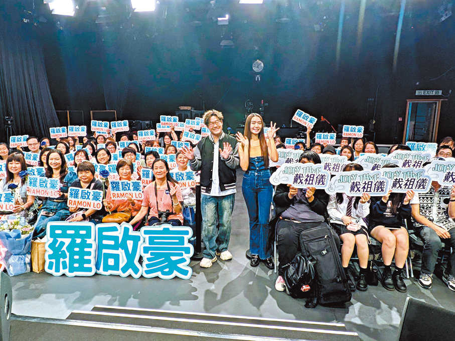 香港文匯報訊(記者 達里)戴祖儀與羅啟豪昨日參與電台節目《港樂·講樂》錄影,除了現場獻唱新歌外,又與觀眾玩遊戲,他們更被粉絲冠以新組合「戴羅RJ」,希望將來有機會合作,甚至共同寫作一首新歌。