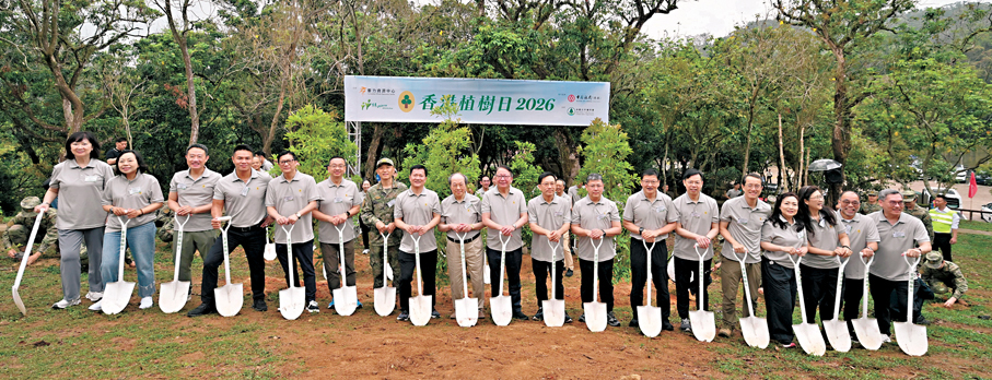 香港文匯報訊(記者 張茗)「香港植樹日2026」昨日在西貢蕉坑舉行,近2,000名參加者共栽種5,000棵本地原生樹苗。特區政府政務司司長陳國基表示,每年植樹日不但是市民參與綠色建設的年度盛事,更是香港上下一心積極響應國家推動綠色發展的具體行動實踐,國家「十五五」規劃綱要強調要形成綠色生產生活方式,特區政府會全力帶領香港主動對接國家「雙碳」目標,致力於2035年前將碳排放量減半,2050年前實現碳中和,為國家的生態文明建設貢獻香港力量。