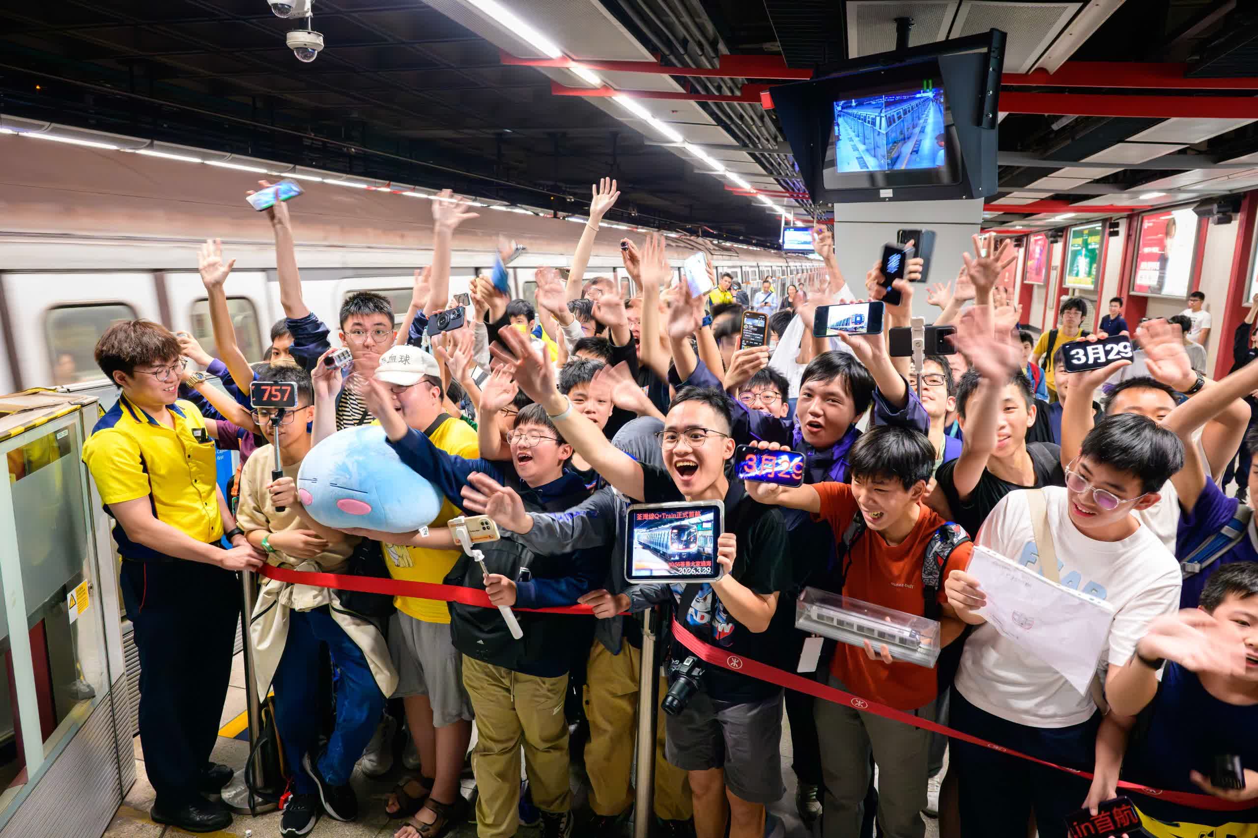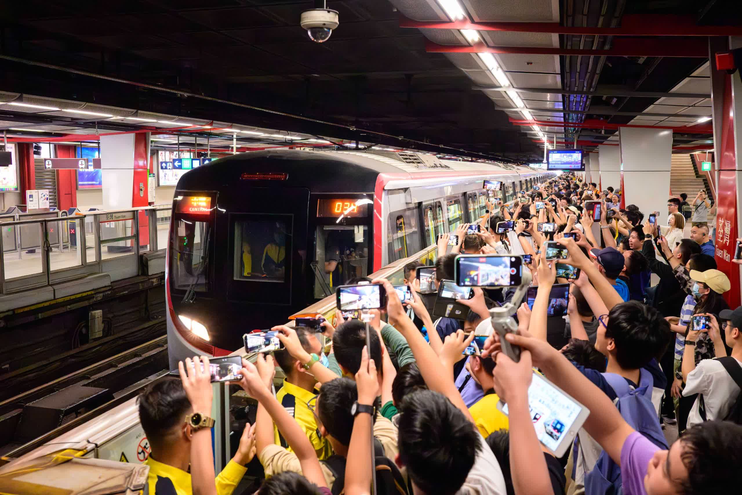 香港文匯報訊(記者 蕭景源)港鐵荃灣綫的新信號系統於本月15日正式投入服務,首列使用該新信號系統的市區綫新款列車「Q-train」,今日(29日)早上10時57分由荃灣站開出前往中環站方向,正式於荃灣綫服務乘客。荃灣站一早有逾百位鐵路迷在場等候,見證新款列車在荃灣綫首航。有乘坐完新款列車的乘客表示感覺舒適。港鐵指,新列車今日運作大致暢順。