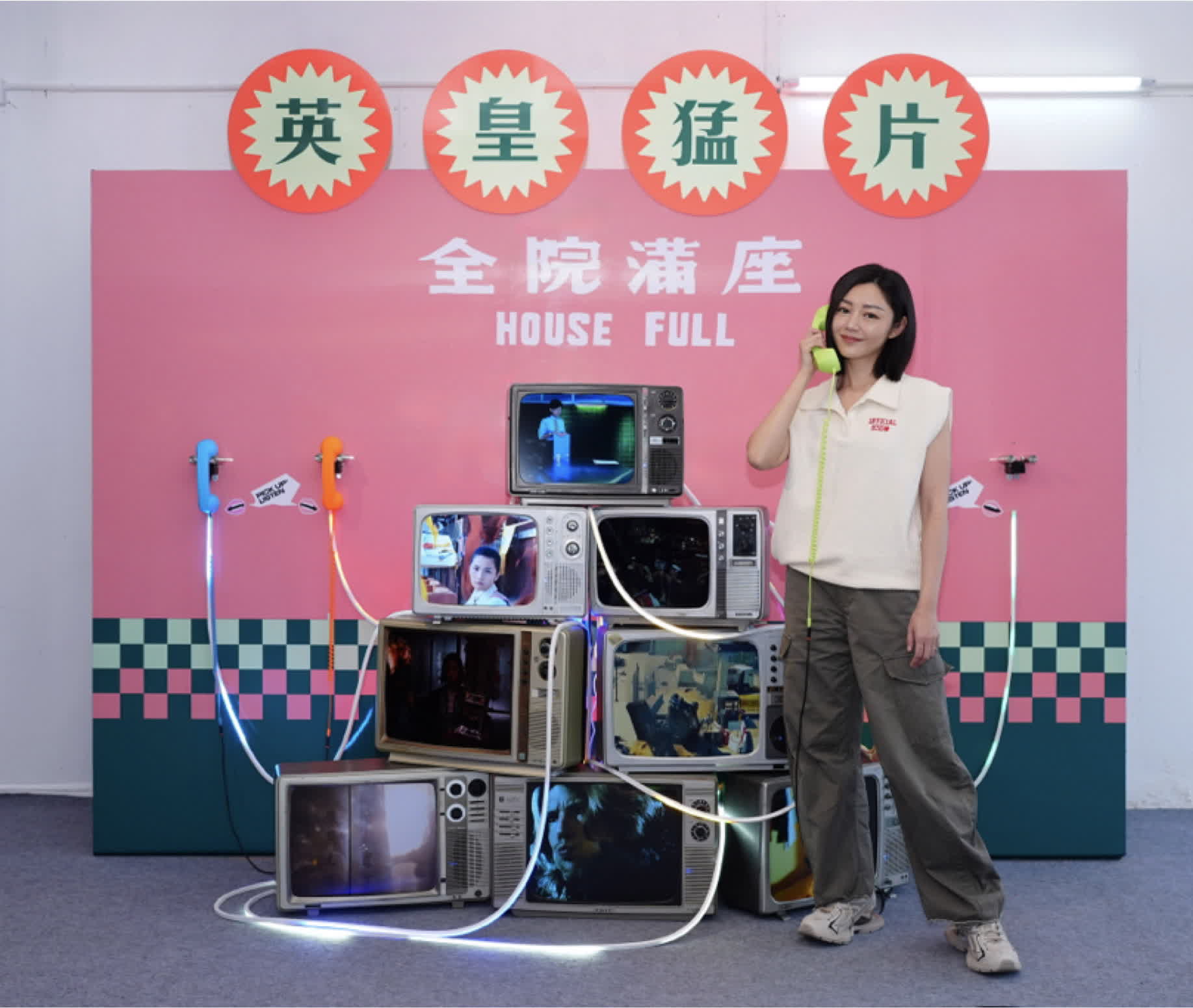 Michelle率先試玩經典攤位遊戲,她有感自己去了室內遊樂園:「我細個放學有時都會去玩,所以頭先我輕鬆連贏三關,成功贏到周邊紀念禮品,聽講公司今次準備咗好多唔同嘅周邊產品分批推出,好有收藏價值。」Michelle更特別走到「英皇25年經典音樂與電影美學」為主題的互動裝置,在有自己電影作品的復古電視機前打卡,很開心自己一共有四套電影包括《前度》《破地獄》《海關戰線》及《不日成婚2》入選猛片系列。