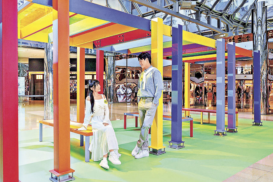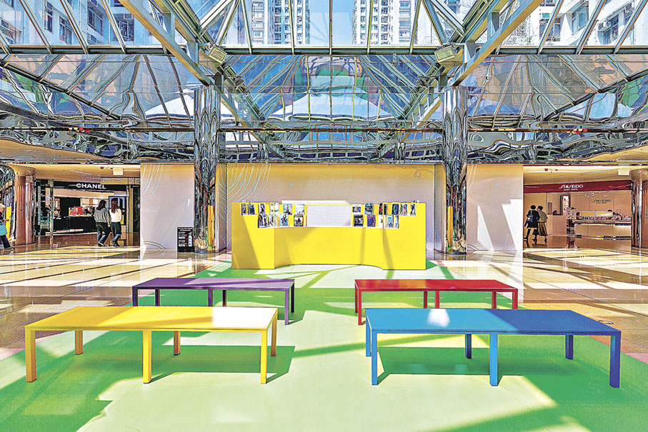 在太古城中心熙來攘往的日常當中,透過彩色大型模組高架平台配合相應的透明頂蓋和座椅,開闢出「LET'S SEE 歡朋滿座」這個公共藝術交流平台。座椅在陽光折射下綻放斑斕五彩光影,具象化呈現出作品匯聚多元文化與思想交流的精神內涵。不妨放慢腳步,在這個光影空間相聚相遇,以藝術作為導引,體驗片刻自在悠然。