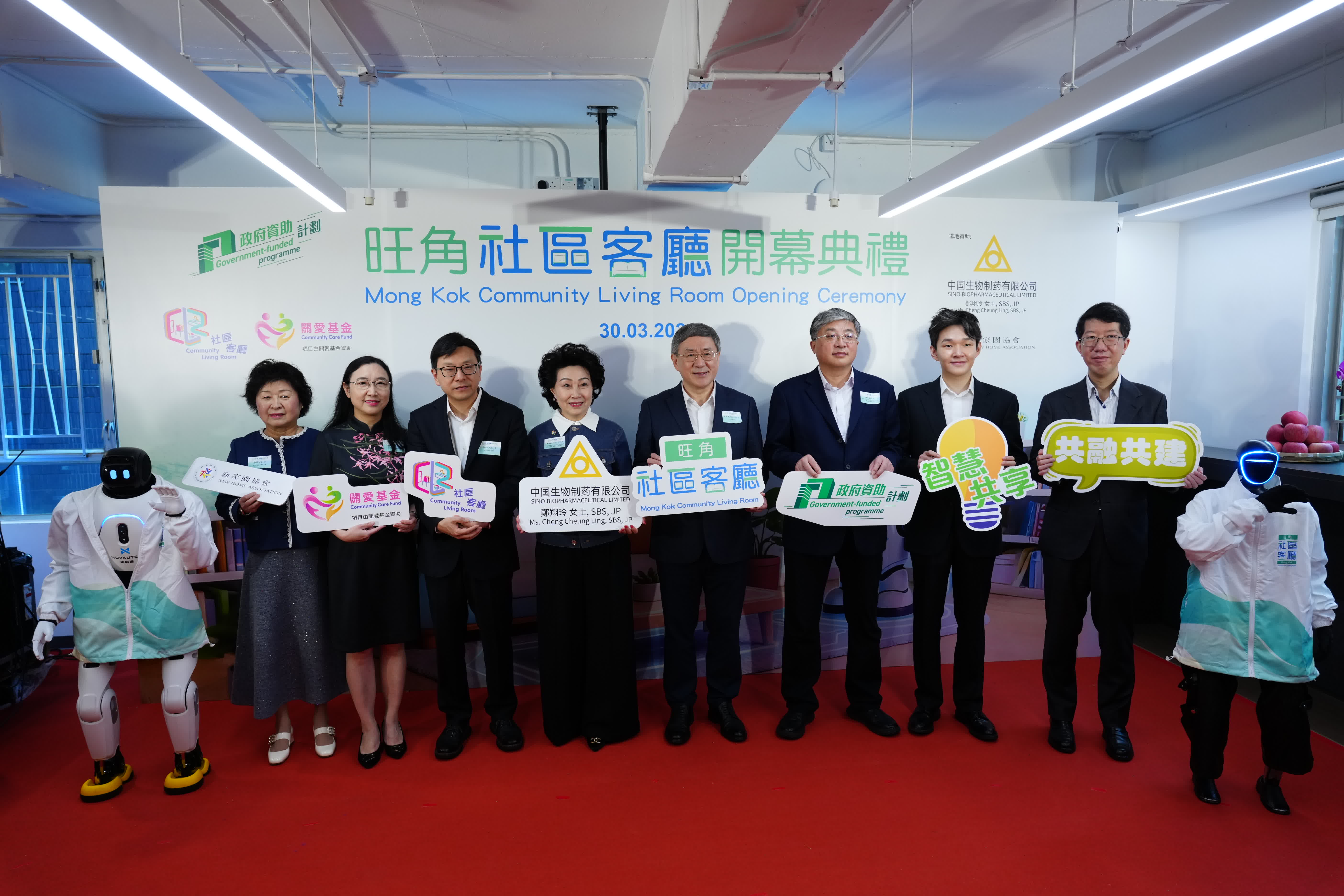 「旺角社區客廳」由新家園協會營運,獲中國生物製藥有限公司及中國生物製藥有限公司董事會副主席及執行董事、香港中華聯誼會會長鄭翔玲資助場地,關愛基金資助營運費用。項目為支援「劏房戶」的生活需求,除了設有多項生活空間設施、社區支援服務,更實踐跨界別協作,連繫商界及地區組織,透過關愛共享平台,向有需要人士提供非現現金資助及義工服務,全方位回應基層家庭的生活需求。