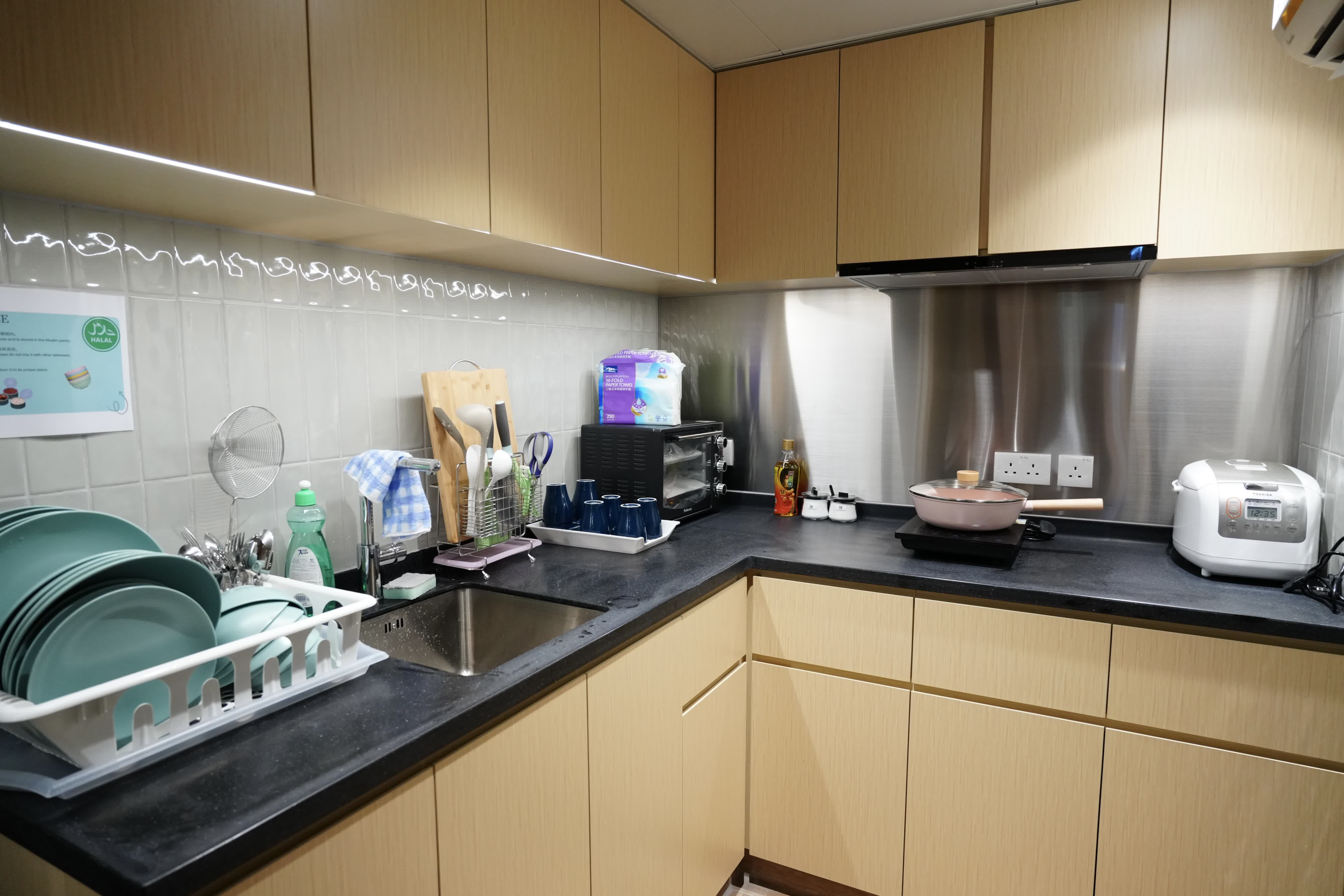 旺角社區客廳融合科技應用與人文關懷,設有多個人工智能設備,如備餐間配備智能炒菜機、健康閣配備智能健康檢測設備,支援即時數據記錄和線上問診服務。為支援少數族裔使用者,客廳設有全港首個獨立穆斯林備餐區,亦有面談及祈禱室,設有方位指示,方便穆斯林敬拜。