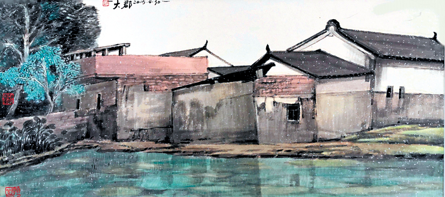 下一道關鍵工序是覆背,也就是對作品再進行一次整體托平。我把一百多幅作品重新按照托底的流程操作,分批裱在晾曬板上。待徹底乾透後,每一幅作品都變得平整挺括,再配上素絹鑲邊,如同精心修飾過一般,更顯精神雅致。我也由此真切體會到「三分畫,七分裱」這句老話的深意。隨後便是安裝天桿、地桿和軸頭。將天桿包黏在天頭最上端,地桿固定在地頭最下端,再在地桿兩端裝上軸頭,最後在天桿上繫好掛繩,一幅完整的書畫裝裱便完成了。望着這一百多幅裝裱一新的作品,我內心充滿欣喜,沒想到自己竟靠自學掌握了書畫裝裱這門手藝。之後,我又把60多幅精選水彩畫裝入定製畫框,看着整齊排列的作品,心中倍感欣慰。