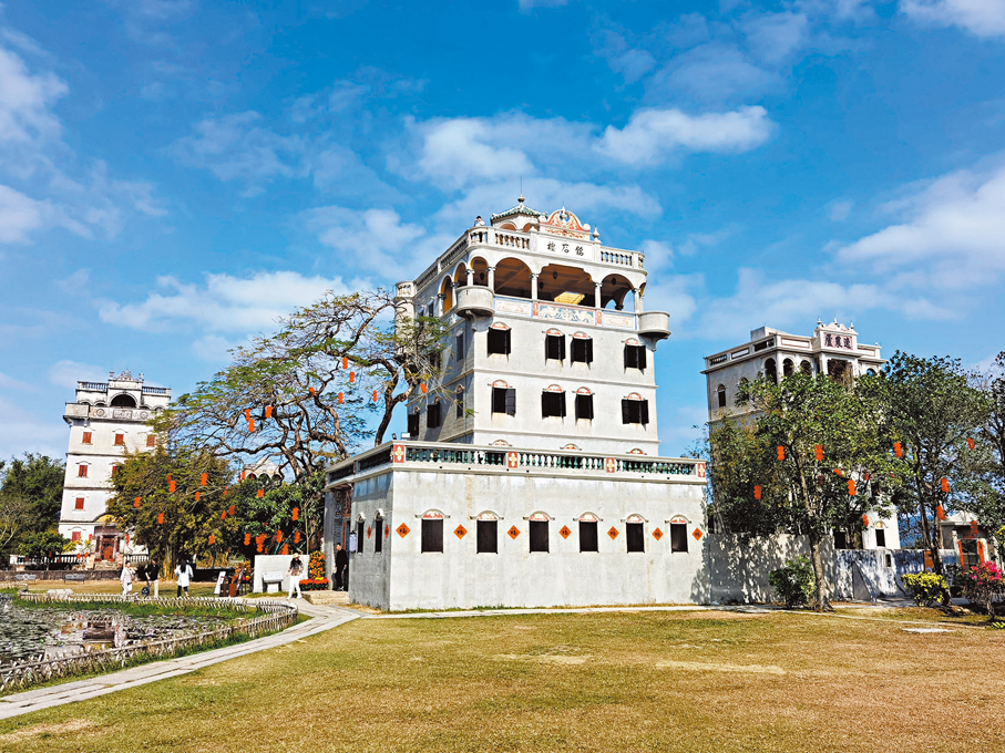 碉樓和騎樓一樣,都不是傳統的中式建築,也不是典型的西式建築。「開平碉樓與村落」入圍《世界遺產名錄》,包括赤坎鎮三門里、塘口鎮自力村、百合鎮馬降龍和蜆岡鎮錦江里四個片區。其核心價值在於,這些村落及碉樓群並非被動接受西方文化,而是中國鄉村主動融合外來文化的富有創意的產物。從建築美學和文明演進看,開平碉樓是開風氣之先的華僑群體將親眼所見的西方建築元素與根深蒂固的中國傳統文化大膽融合的傑作,是凝固在嶺南這片大江大海交匯處的交響詩。