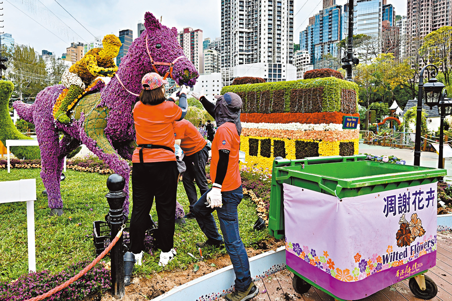 香港文匯報訊 為期10天的香港花卉展覽已經圓滿結束,康樂及文化事務署緊接於花展閉幕後兩天,即昨日及今日(30日及31日)在維多利亞公園舉辦環保回收日活動,加強實行環保措施和減少廢物棄置。超過400名由賽馬會、工商機構、地區組織、康文署員工組成的義工隊,響應花展環保回收日活動,昨日於會場協助分類並回收可重用或循環再造的物料,減少廢物棄置。大會並將狀態良好及可再種植的花卉公開派發給市民,昨日在維園糖街入口處派發了約3,500盆花卉。
