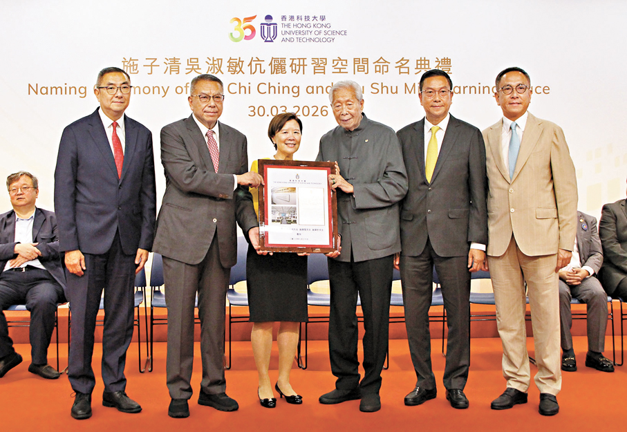 香港文匯報訊(記者 李芷珊)香港科技大學昨日舉行施子清吳淑敏伉儷研習空間命名典禮,該空間設於李兆基圖書館內,展出多幅施子清的書法作品,讓師生感受中華文化藝術。施子清兒子之一、香港恒通資源集團有限公司董事總經理施榮怡表示,父親近年積極推動「書法進校園」,期望年輕一代在筆墨之間,培養對傳統文化的自信,他希望此舉能拋磚引玉,呼籲更多社會人士支持本地院校的發展。港科大校長葉玉如感謝施子清4位兒子的慷慨捐贈,助力培育兼具傑出專業知識、創新思維與文化素養的社會精英。