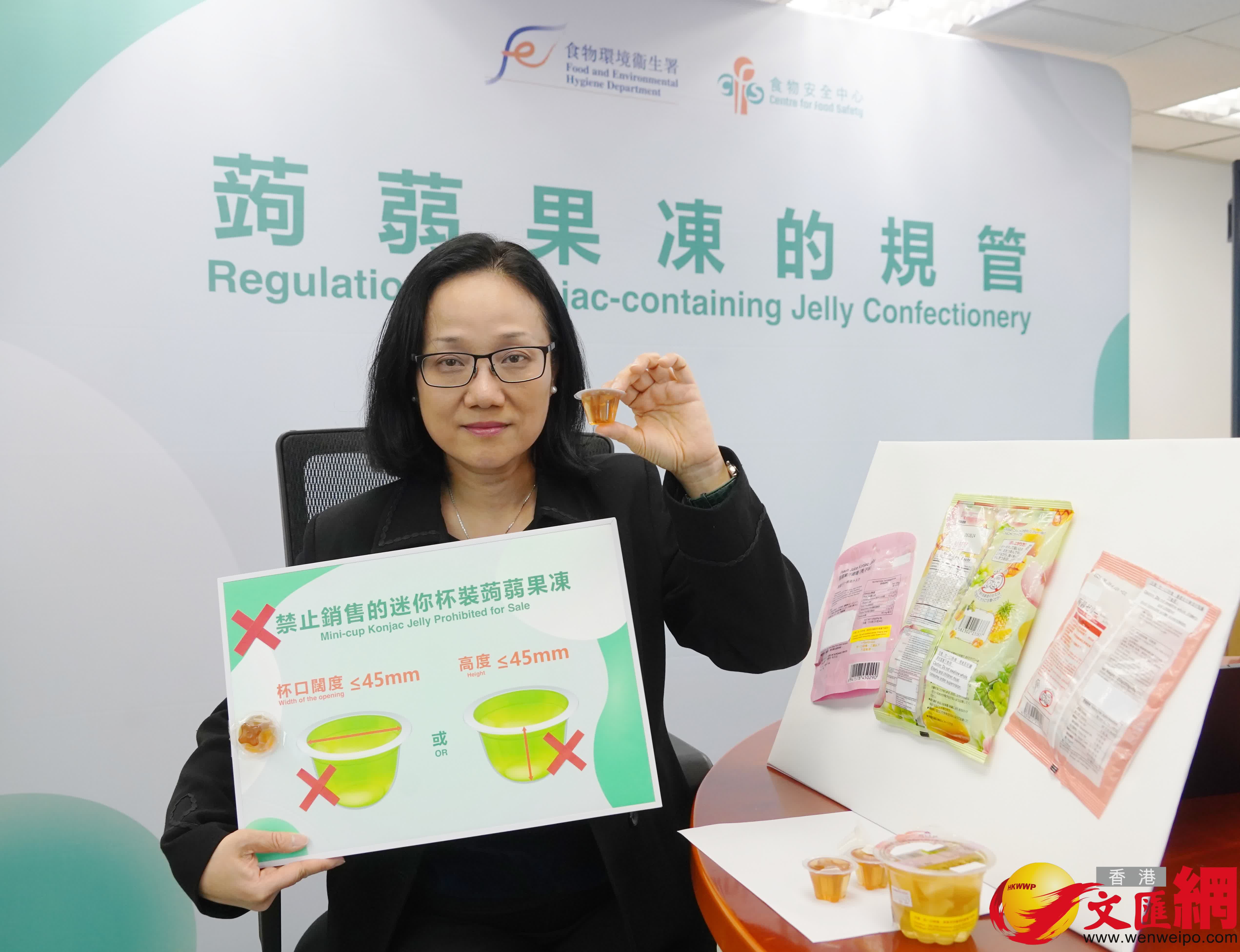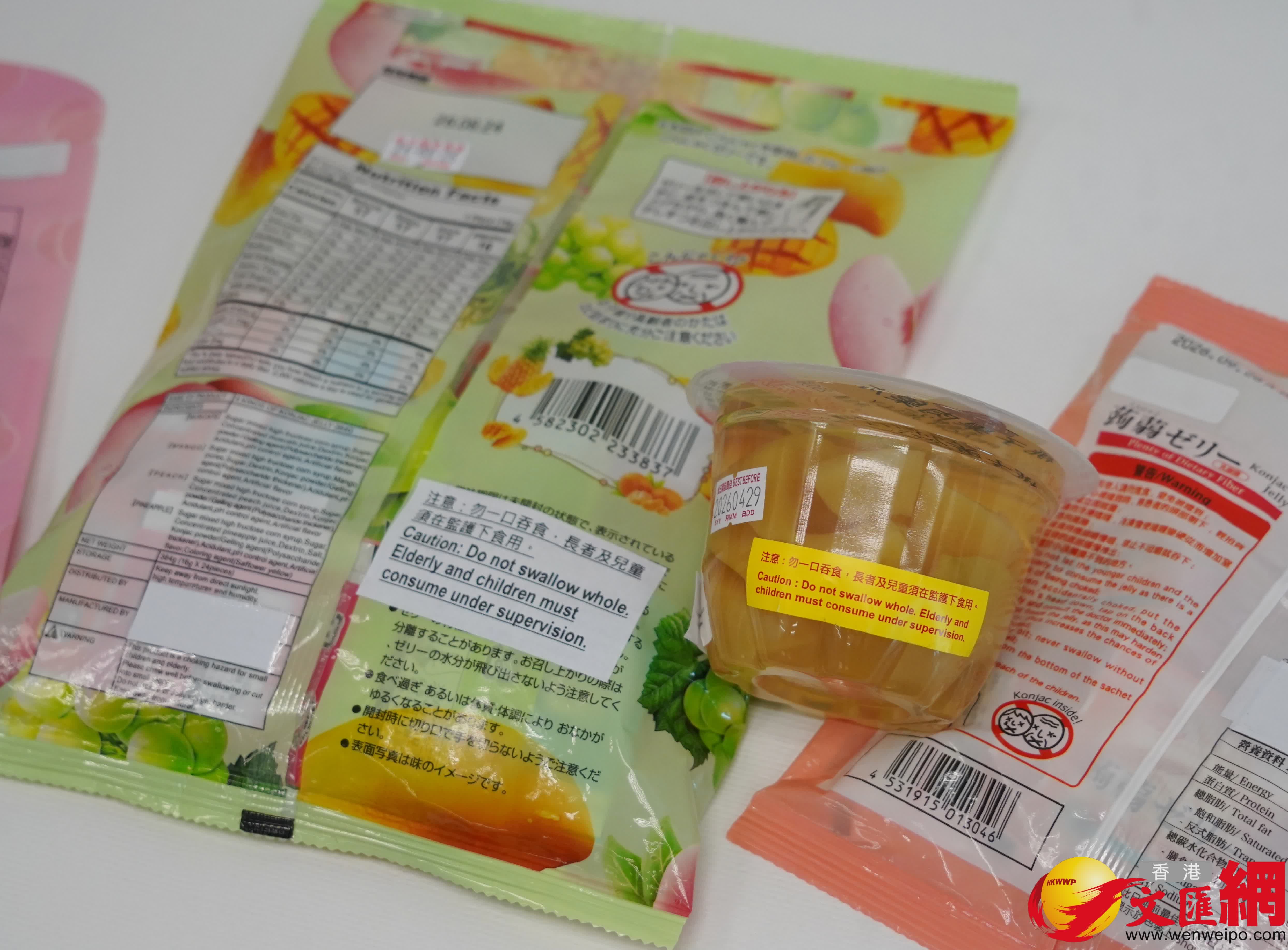 食物安全中心食物安全專員黃宏指出,食品法典委員會認定蒟蒻屬安全添加劑,但迷你杯裝蒟蒻果凍質地結實、體積細小,若食用不當容易引致哽噎,對長者及兒童風險尤高。