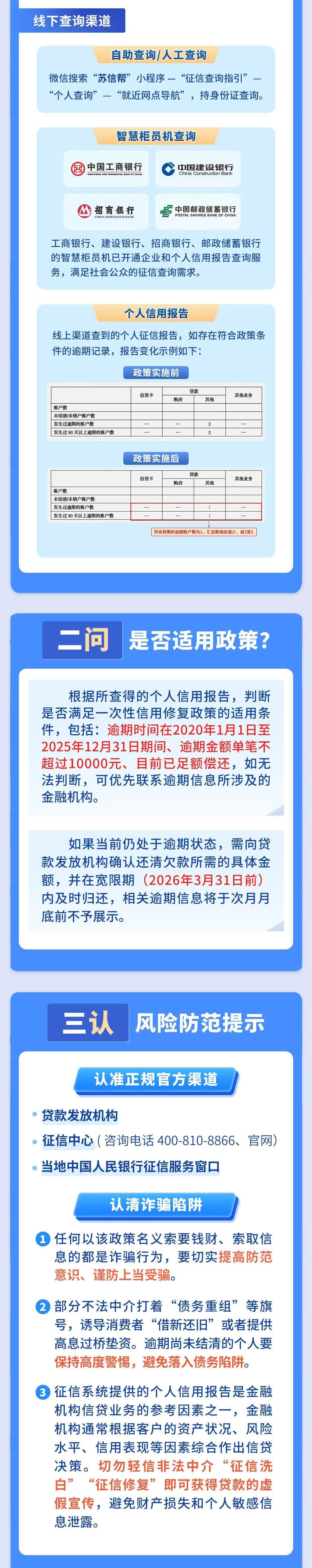 1.適用時間區間:逾期信息產生於2020年1月1日至2025年12月31日期間。2026年1月1日起,新逾期的按常規徵信規則,逾期紀錄保留5年(還清後起算)。