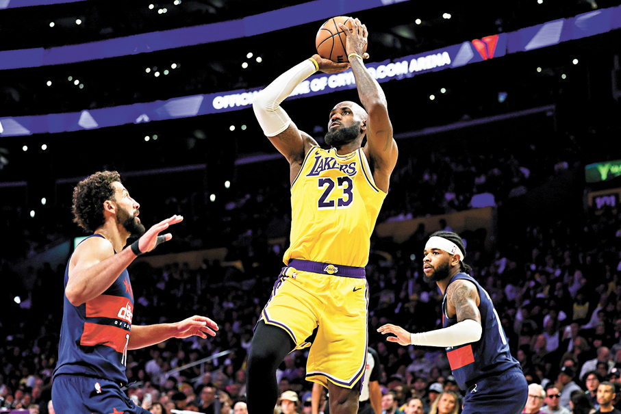 至於西岸「三哥」湖人主場以120:101輕取巫師,主力勒邦占士取得21分、10個籃板和12次助攻的「三雙」佳績,以41歲零91天之齡,刷新自己保持的NBA歷史最年長球員做出三雙紀錄。此外,占士出戰今場比賽後,其常規賽+季後賽的勝場數增至1,228場,追平渣巴紀錄並列NBA歷史第一。湖人主帥列迪克賽後談到占士的成就時表示:「占士當然十分出色,但說實在我已不知道還可說些什麼來讚美他了。」
