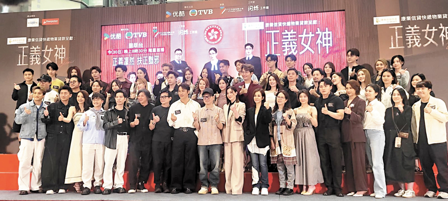 視后佘詩曼(阿佘)、譚耀文(阿譚)、陳煒、周嘉洛、文頌嫻、馬貫東等,前晚到紅磡出席新劇《正義女神》宣傳活動,並與觀眾一同收看劇集首播,吸引大批阿佘粉絲到場支持,場面墟冚。總監製鍾澍佳(佳導)讚阿佘將劇本演繹得十分出色,又笑言叫她不要半夜打給他。 阿佘自認是「問題少女」,自爆為演好法官角色,估計曾傳了一千個訊息給佳導,終於圓夢飾演法官。