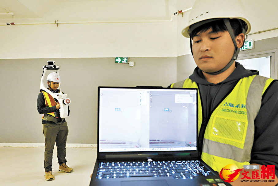 房屋署總結構工程師(發展及建築)王偉洪近日接受香港文匯報訪問時介紹,AI移動測繪系統應用「現實捕捉」技術,透過高精度鐳射掃描、全景攝影及多源感測技術,在工地現場快速進行數碼記錄,生成毫米級精度的三維點雲數據模型後,同時工程人員可於線上查看現場紀錄,並核實AI的分析結果,無需親身到場驗收。「過往未有這項技術時,需要數十名工作人員共同核查,耗費大量人力物力,現在系統不僅更安全地核查高空位置,還能在系統畫面中測量距離,清晰查看各項數據。」