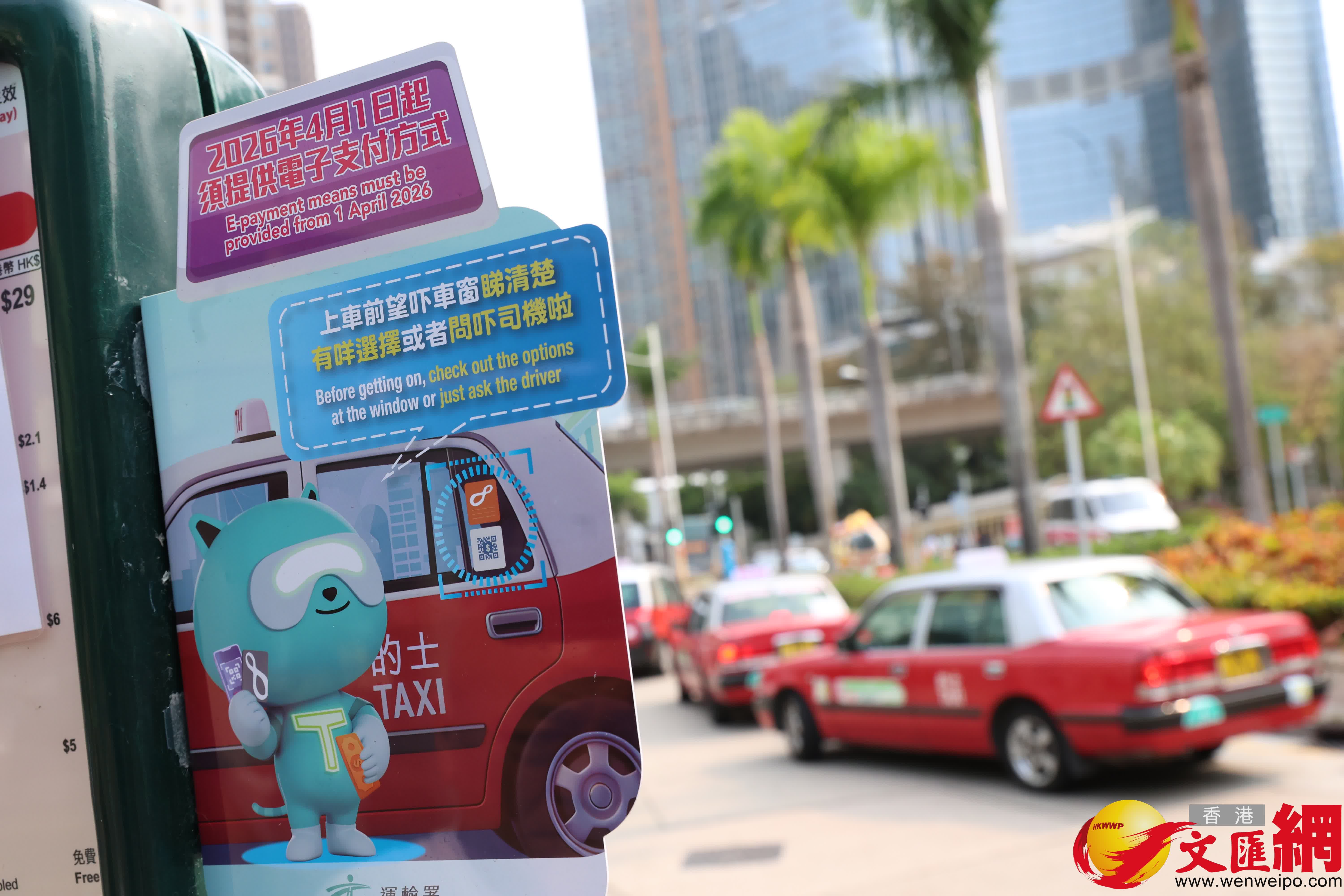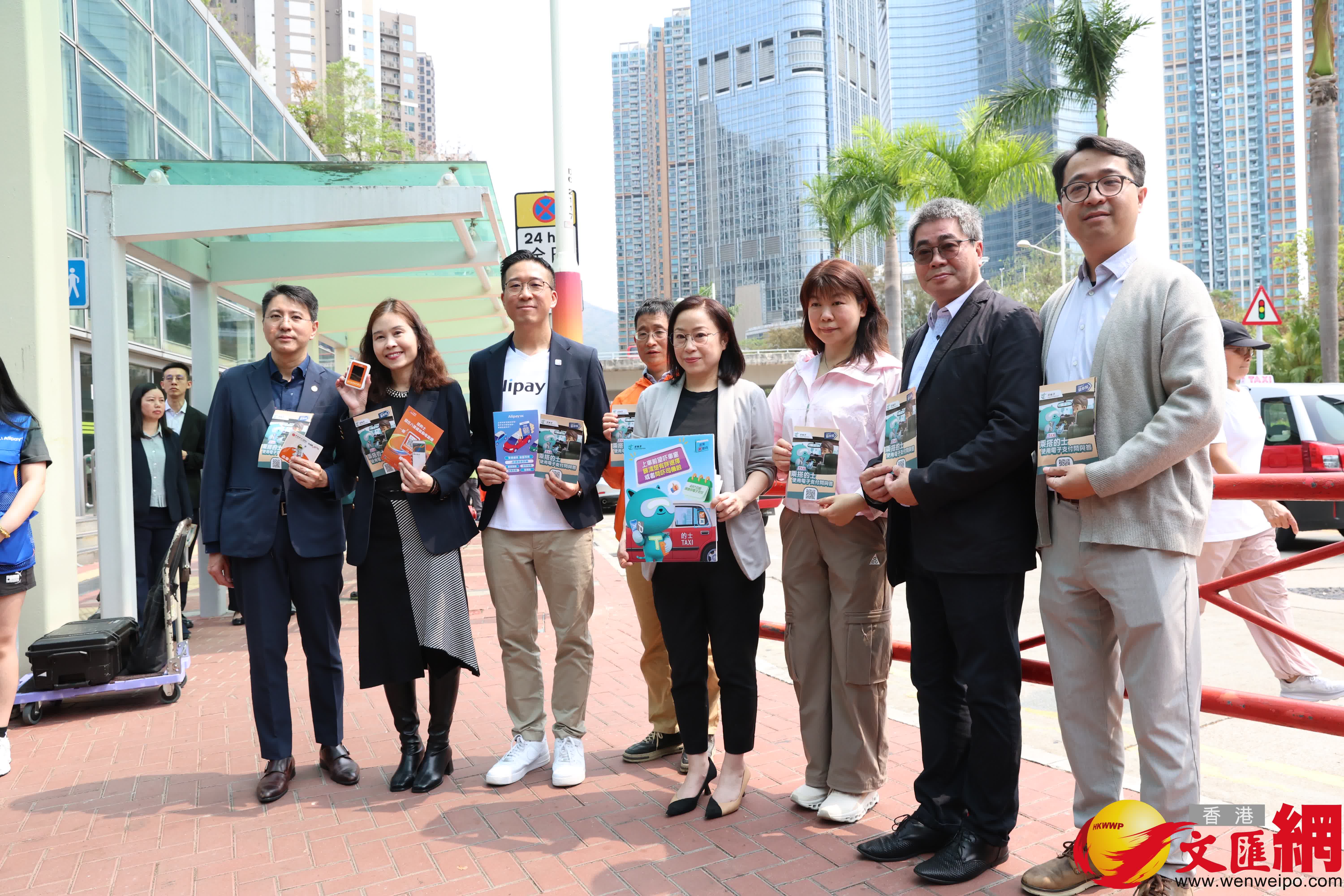 香港文匯報訊 候任運輸署署長謝詠誼視察的士司機提供電子繳費媒介新規定首日的實施情況。電子繳費平台及的士業界代表出席。(記者萬霜靈 攝)