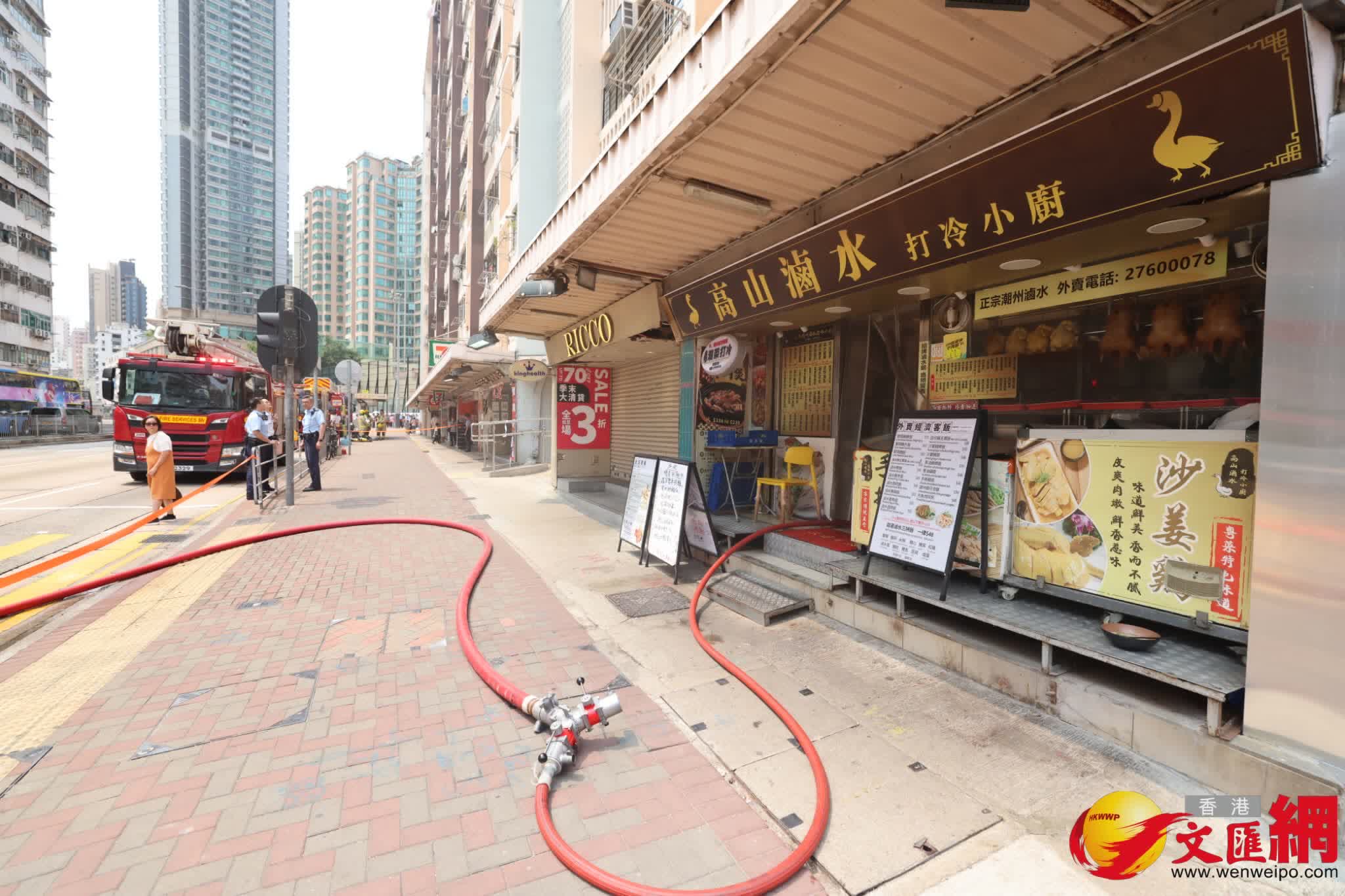 香港文匯報訊(記者 蕭景源)今日(4月1日)早上10時許,土瓜灣馬頭圍邨洋葵樓地下一間潮洲食店疑油煙槽過熱起火,大量濃煙沿油煙槽冒出湧入樓上單位,居民紛紛報警,約40人需要緊急疏散。警員趕至封鎖現場,由消防員分別到食店廚房及後巷向油煙槽射水,迅速將火救熄,初步調查火警無可疑及無人受傷。
