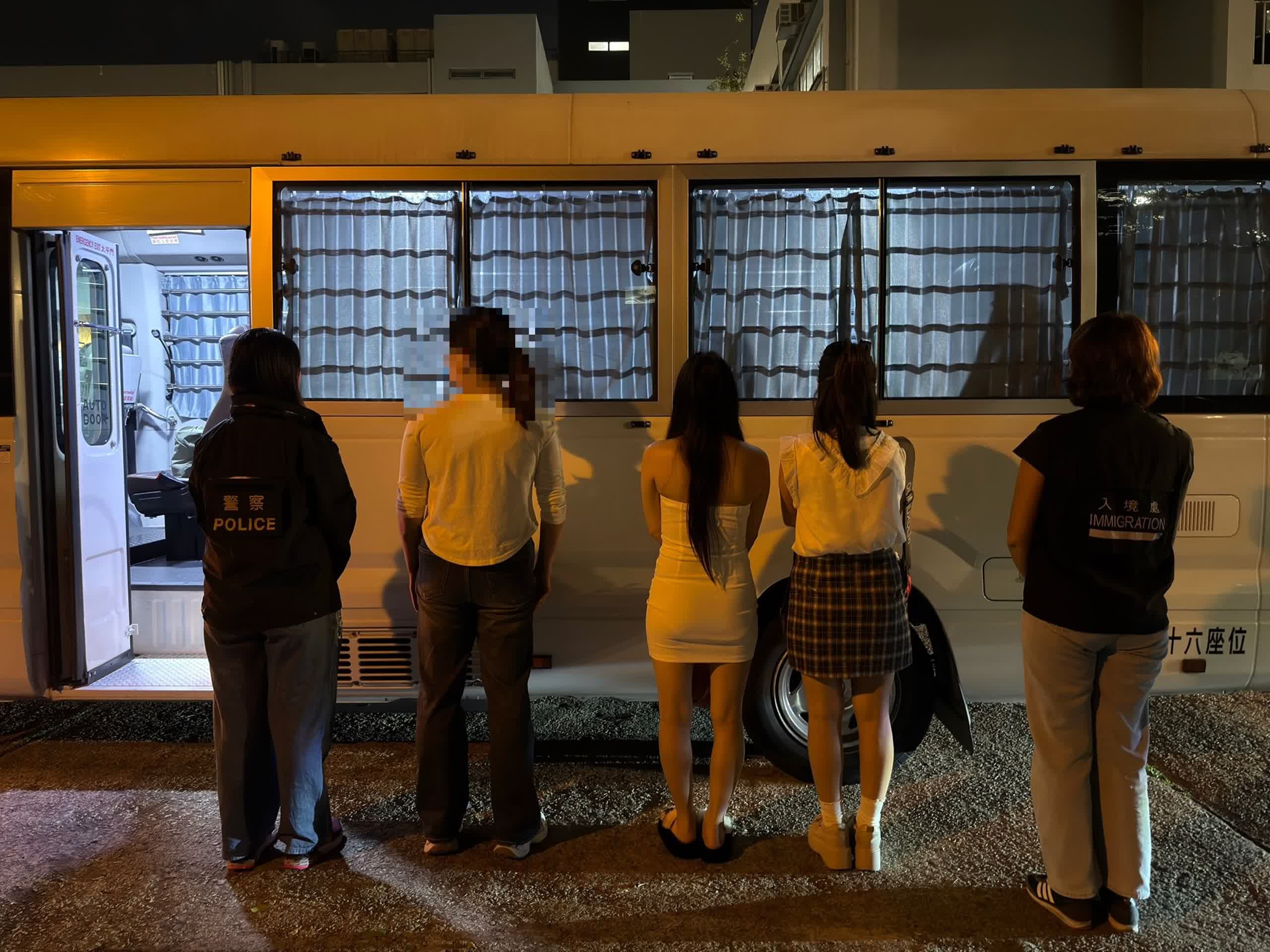 被捕人士包括10名內地男子、7名內地女子、1名外籍女子、1名非華裔男子和1名本地男子,他們年齡介乎29至60歲,分涉違反逗留條件、協助及教唆他人違反逗留條件、行乞及逾期居留等罪名被捕,所有被捕人現正被扣留調查。